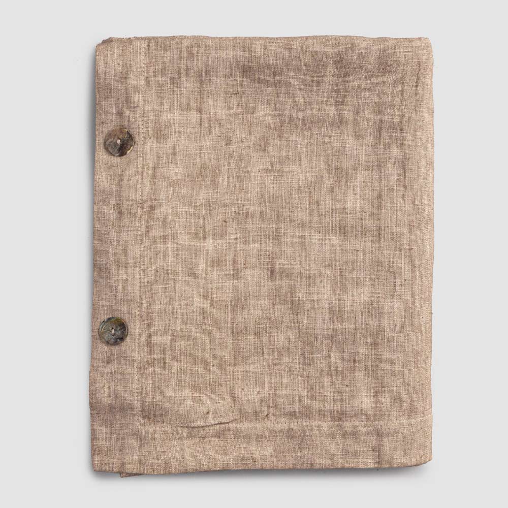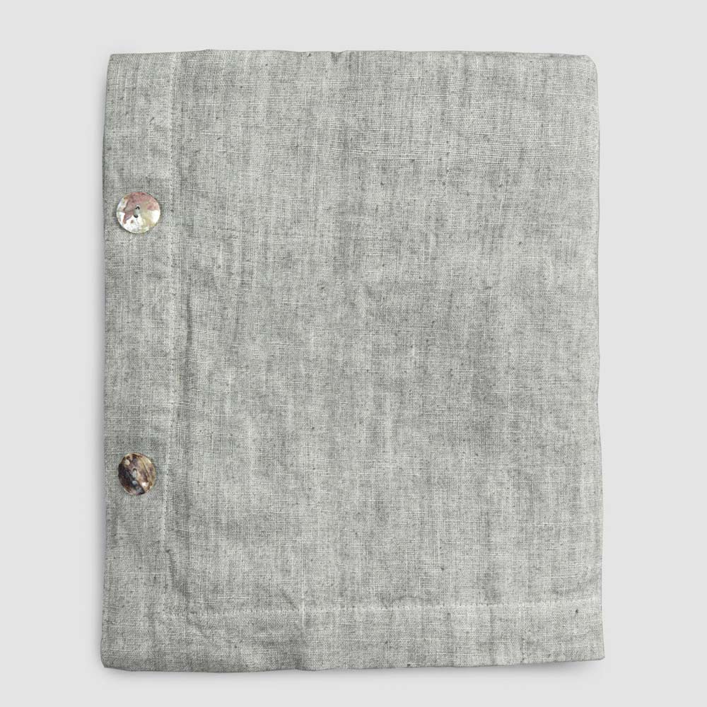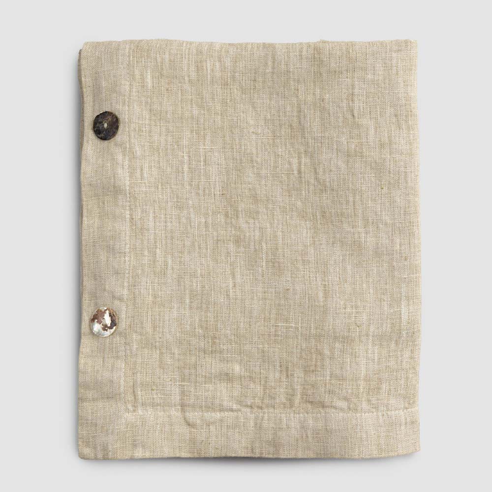 Mantel modular rectangular de lino con botones de nácar, calidad artesanal made in Italy.
