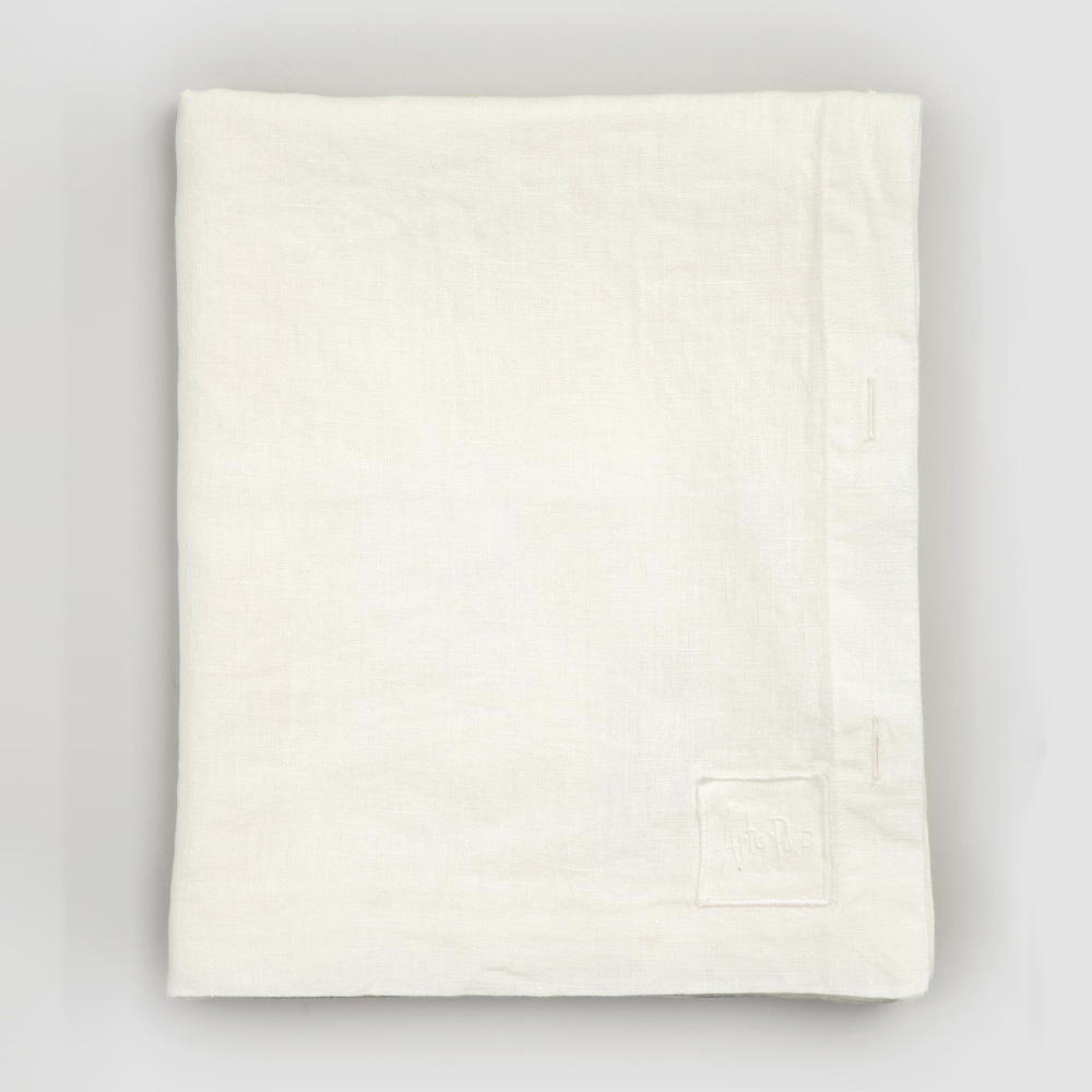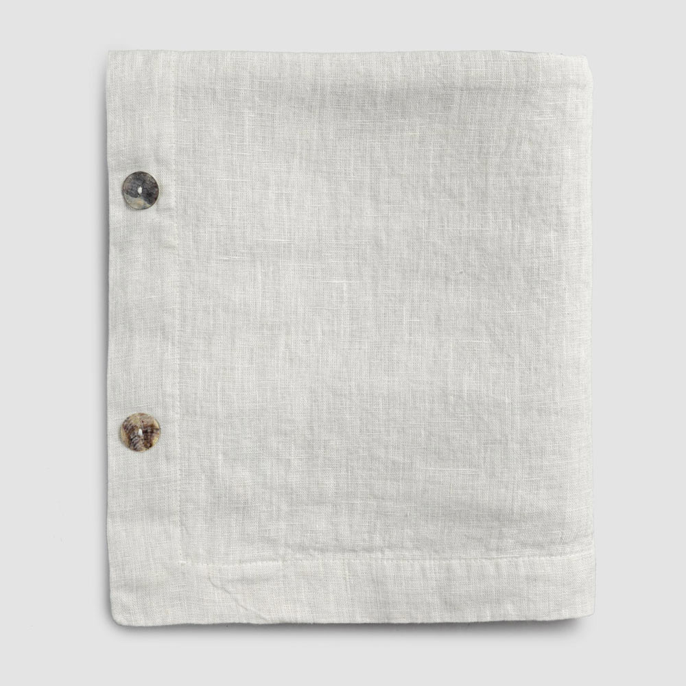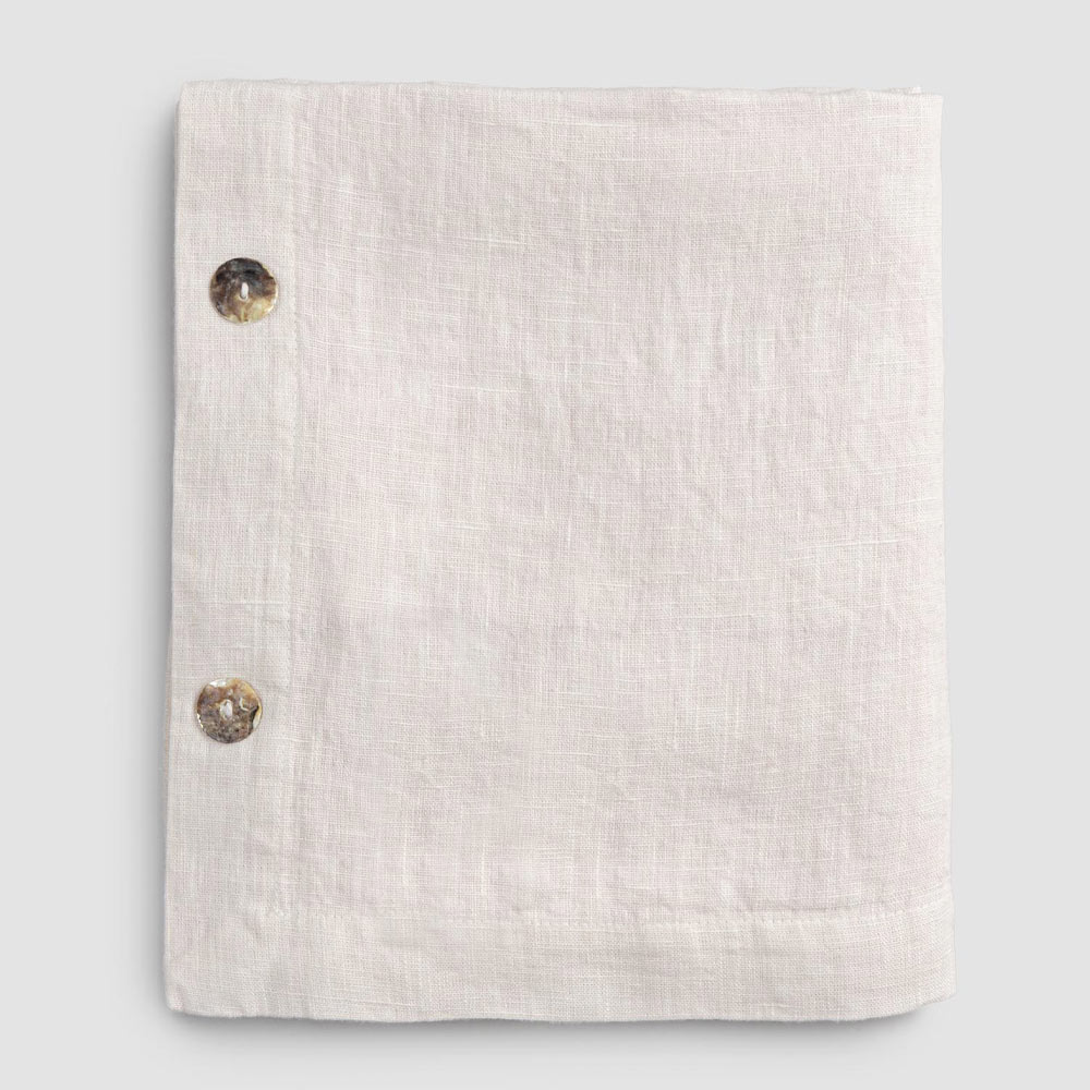 El valor de la tradición se une al estilo de vida moderno con este pesado mantel de lino adornado con una serie de botones de nácar agoya en un lado largo.
