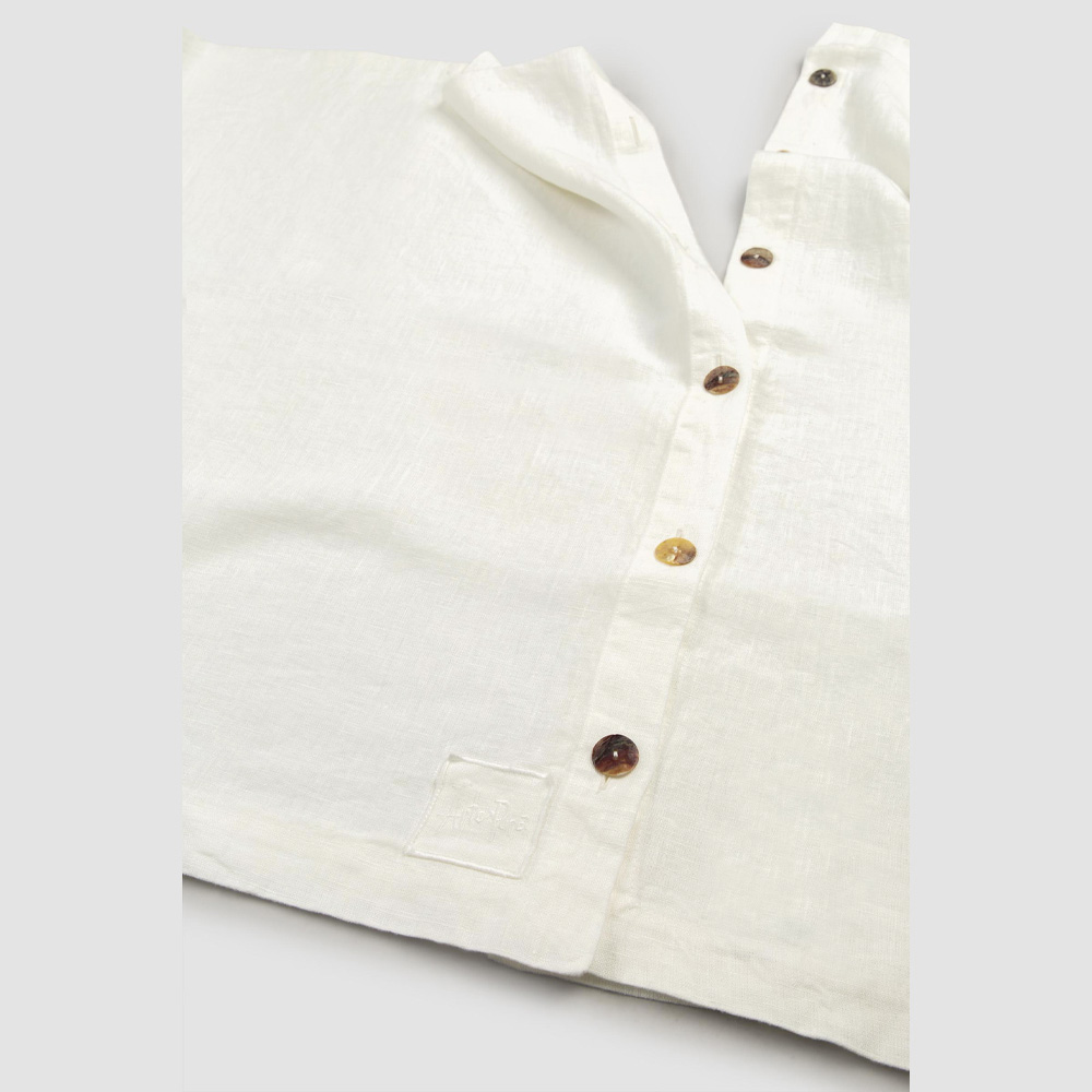 Mantel modular en lino de color con botones de nácar, calidad artesanal made in Italy.
