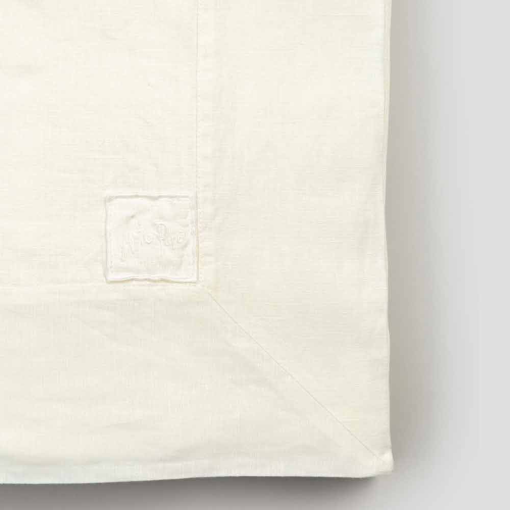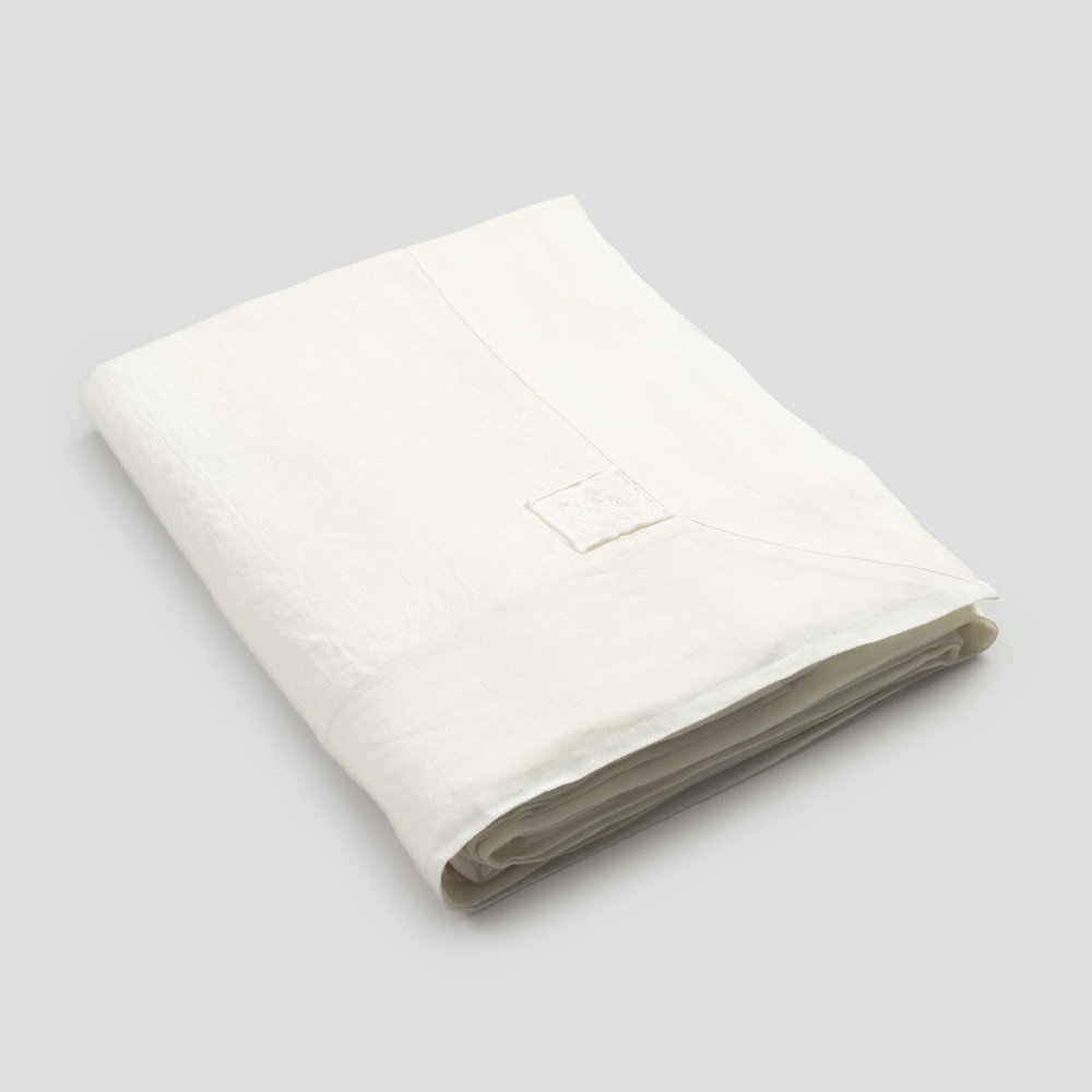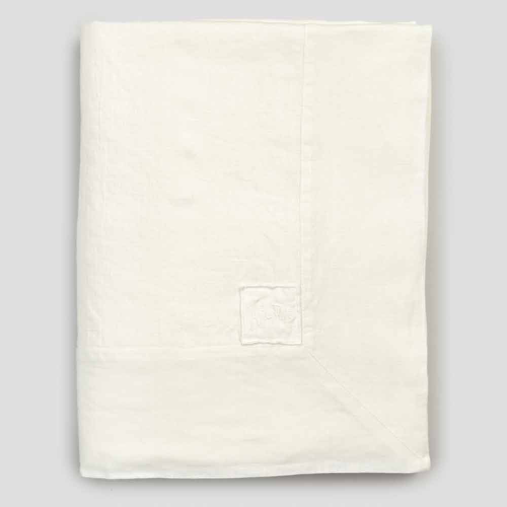 El valor de la tradición se une al estilo de vida moderno con este mantel de lino grueso blanco adornado con bordes altos doblados.