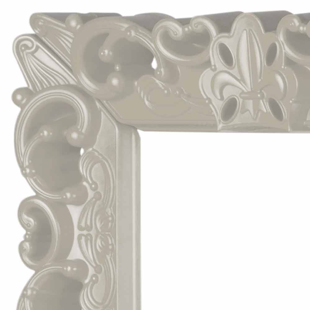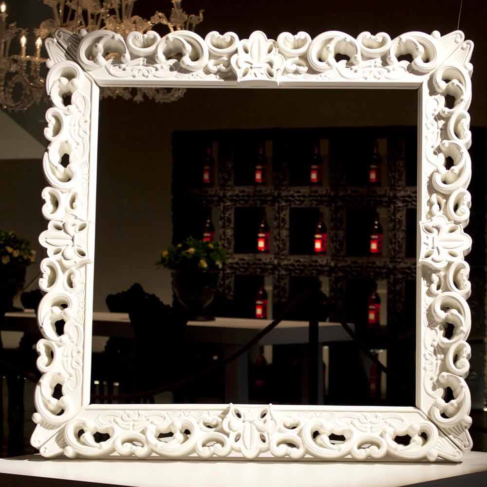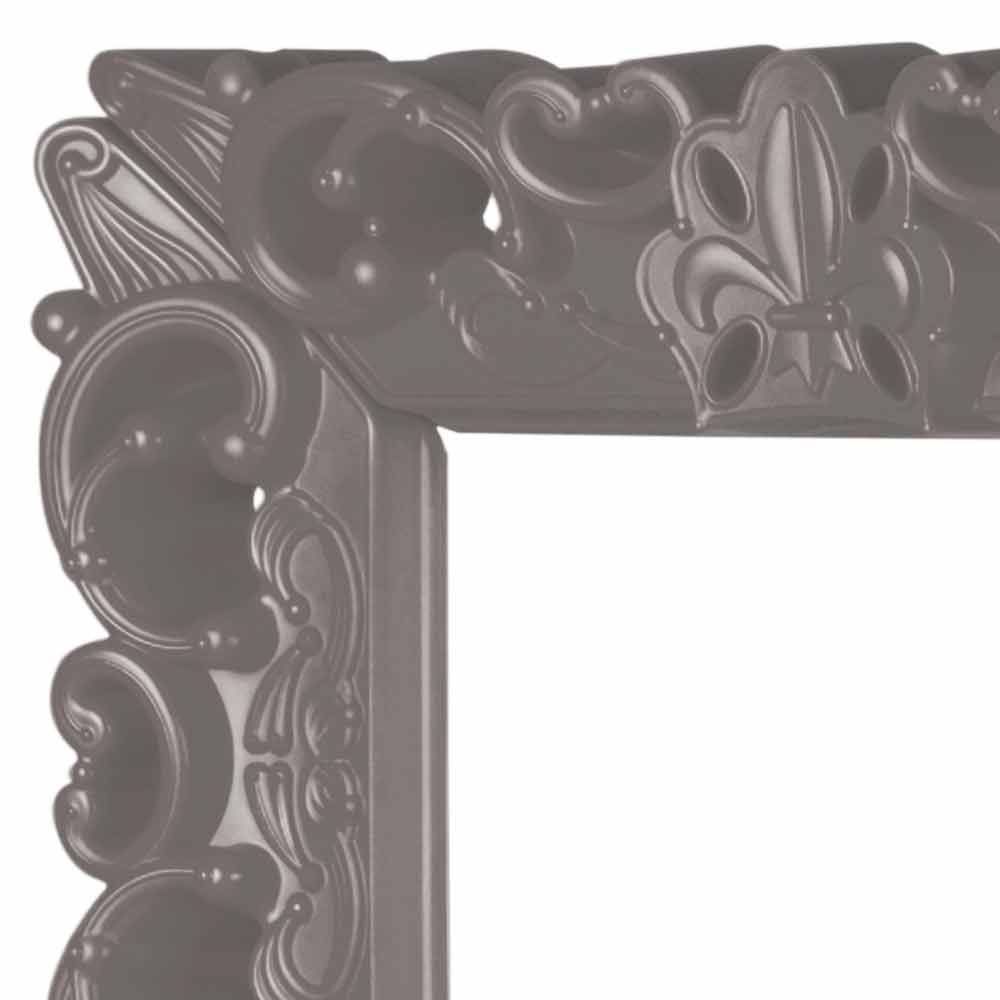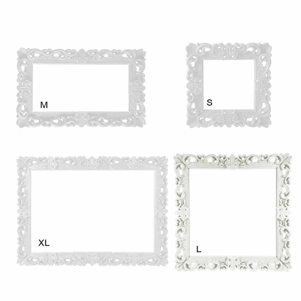 Frame of love es un marco fabricado en polietileno con un estilo barroco y contemporáneo de líneas sinuosas y lleno de detalles. Perfecta para decorar espacios domésticos y no convertirse en el protagonista de tus paredes y dar un toque made in Italy a tu ambiente.