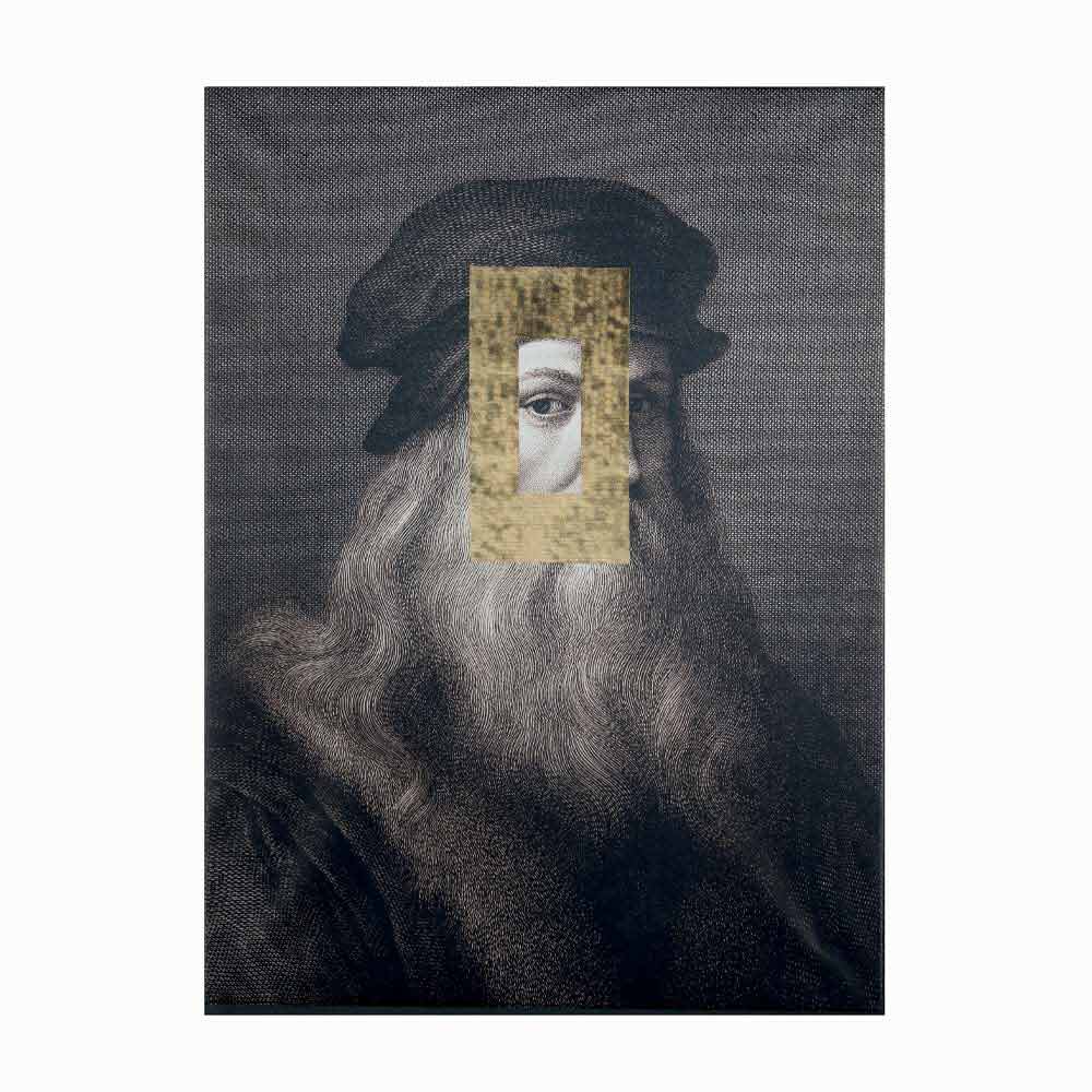 Cuadro mural moderno realizado en Italia en madera con lienzo impreso que representa a Leonardo da Vinci y enriquecido con una decoración rectangular en pan de oro . La elegancia del diseño se une al refinamiento de los materiales para dar vida a un complemento original que puede completar el mobiliario del hogar de forma exclusiva y con una marcada personalidad moderna . Una idea de decoración extremadamente original capaz de enriquecer cualquier espacio de la casa con personalidad y elegancia, aportando toda la vivacidad de estampados creativos y nuevas técnicas y demostrando ser una solución perfecta para quienes buscan un estilo creativo y excéntrico para las paredes de su casa.