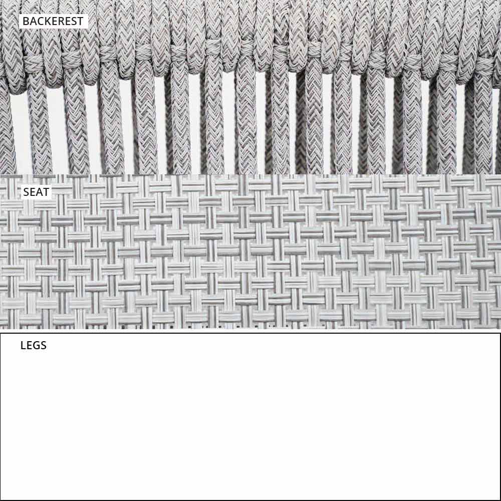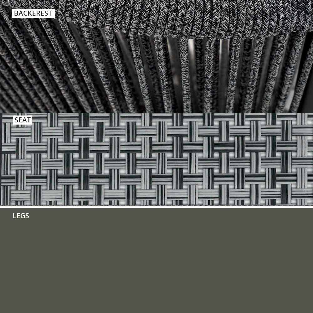 Smart se hizo con una estructura de aluminio pintado , asiento en tela técnica VAR # TEX , respaldo en cordón sintético VAR # TEX (tela técnica en PVC).