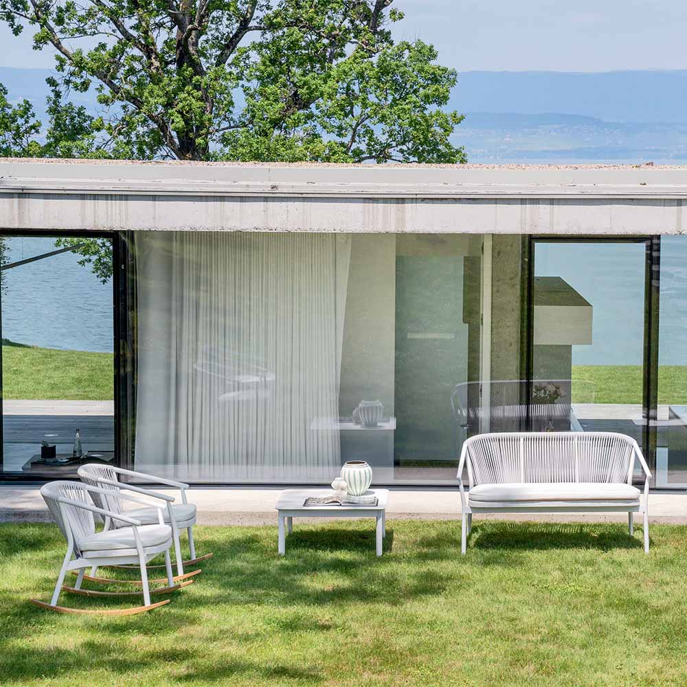 La mecedora Smart Lounge es perfecta para tomar un descanso al aire libre, balanceándose hacia adelante y hacia atrás como cuando te dejas arrullar por las olas del mar.