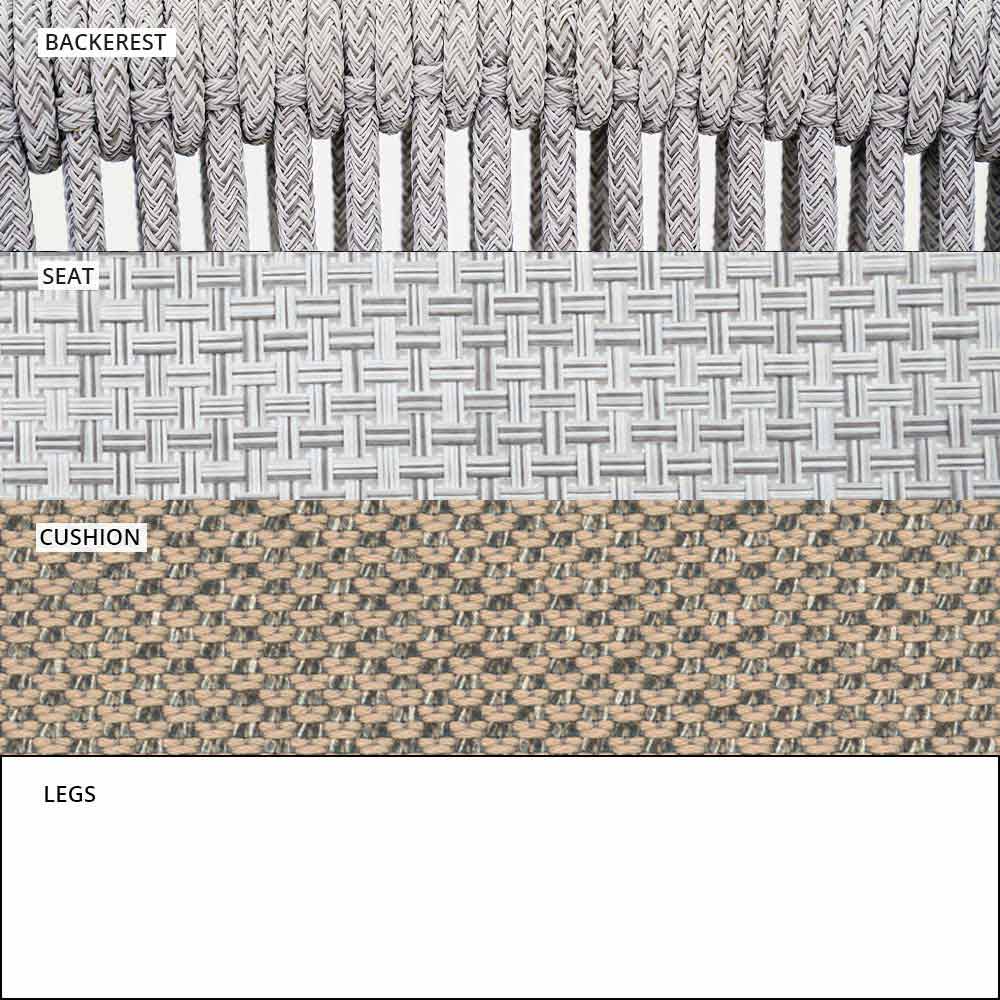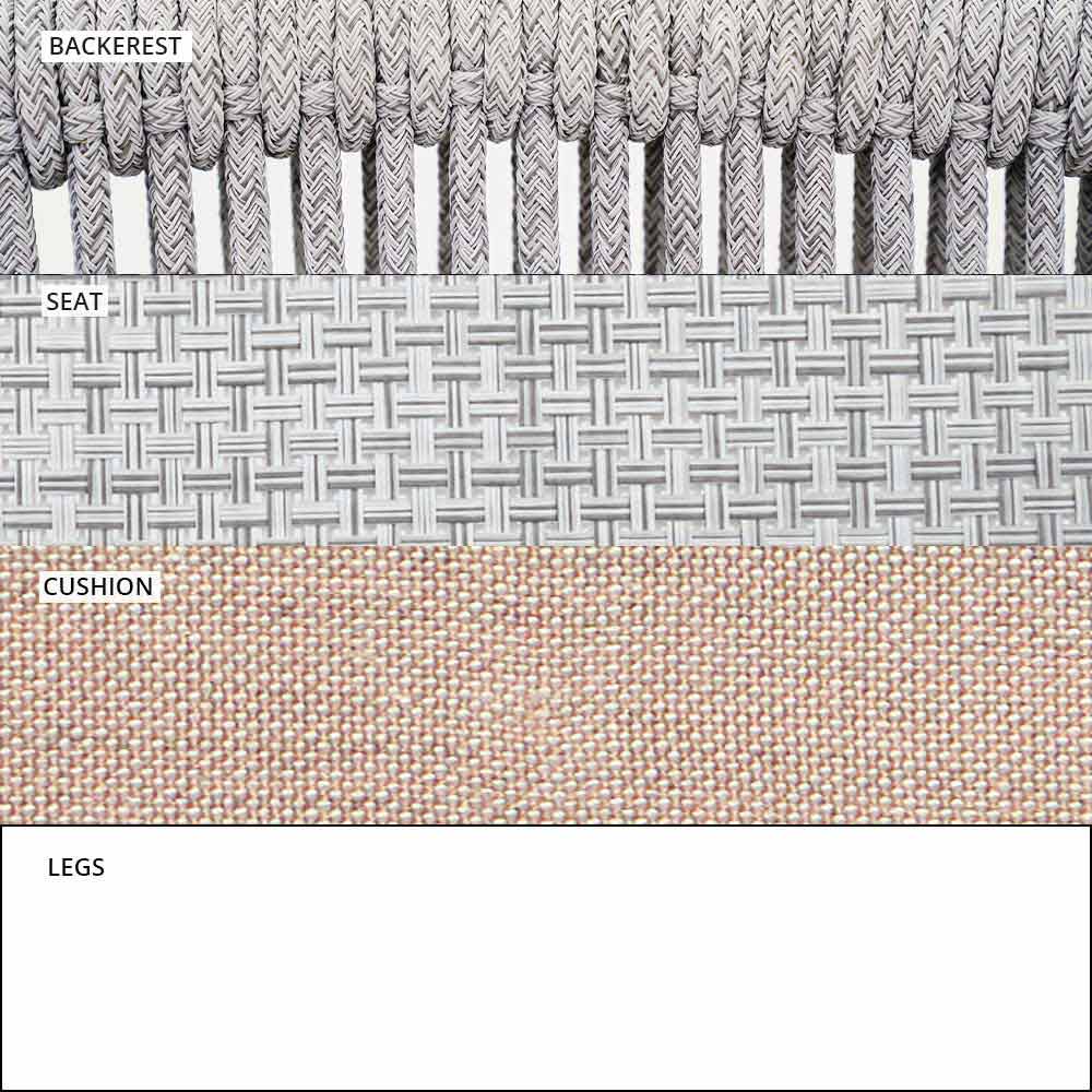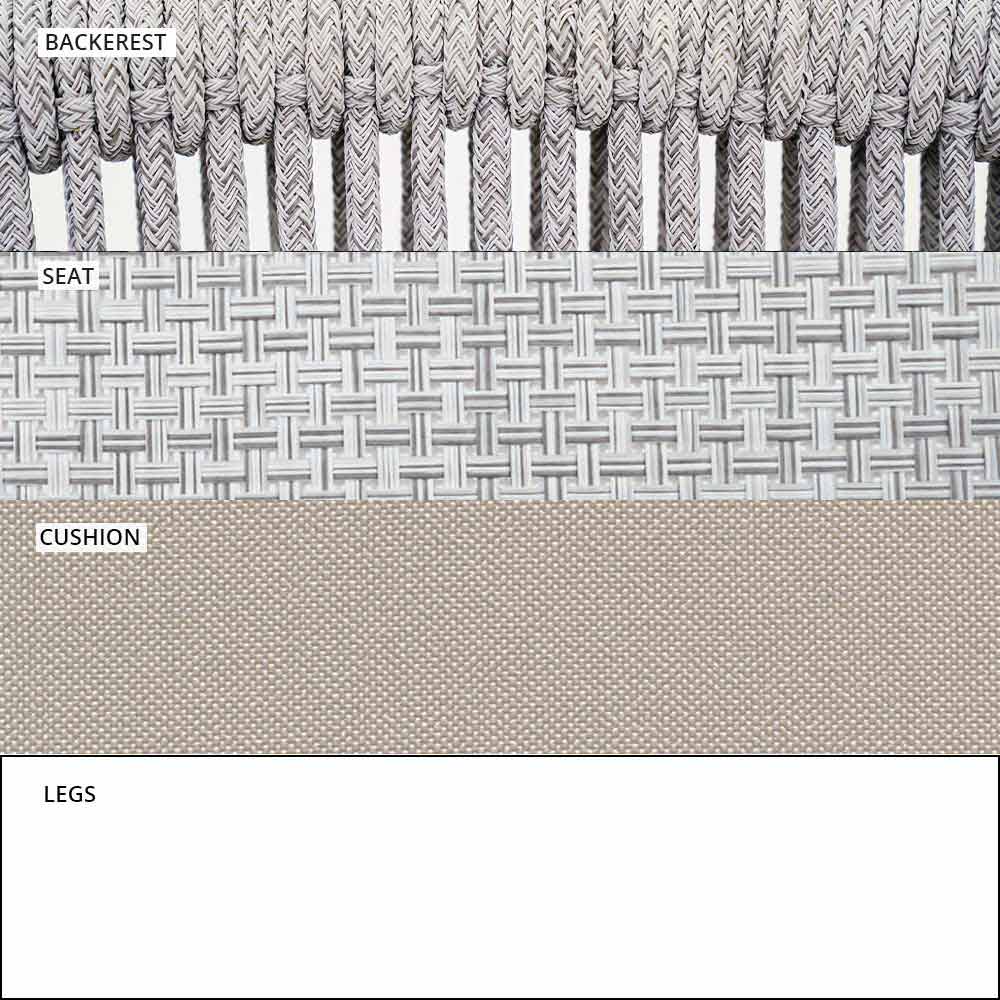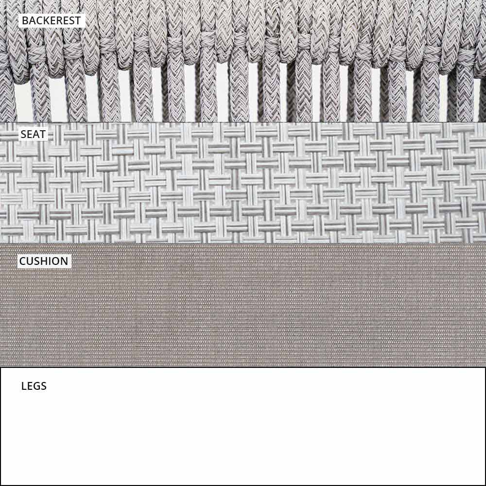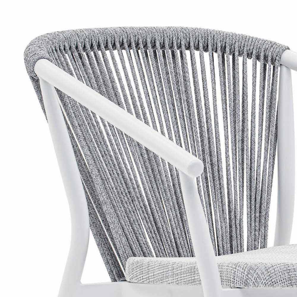 Smart fue hecho con una estructura de aluminio recubierta de polvo blanco, asiento en blanco VAR # TEX tejido técnico y de regreso en VAR # cable de TEX sintético blanco.