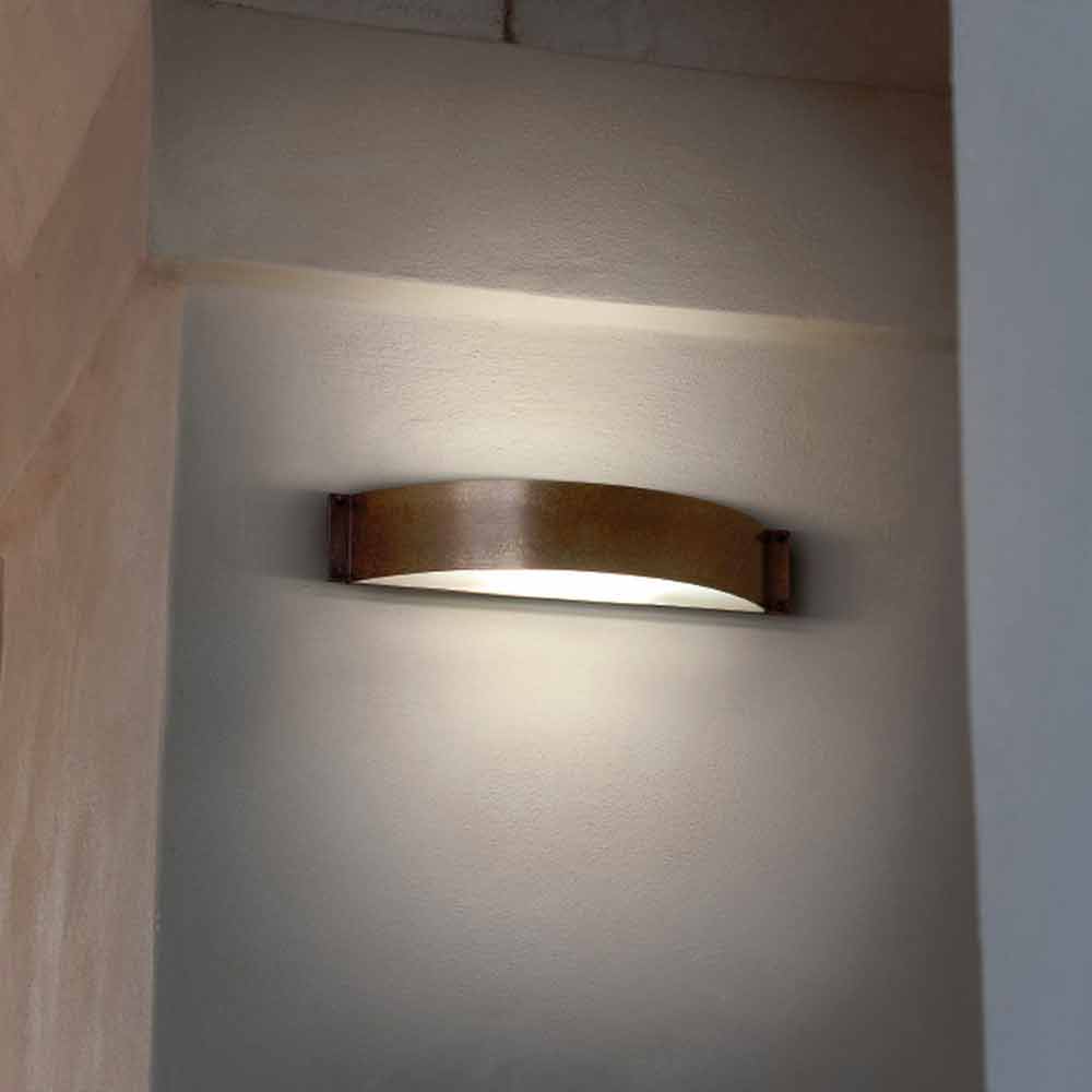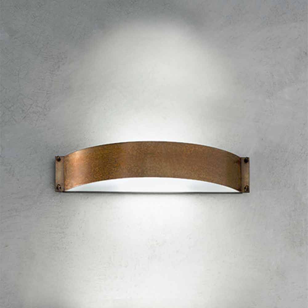 Aplique de pared de diseño Fashion de Aldo Bernardi, realizado en cobre envejecido y metacrilato.