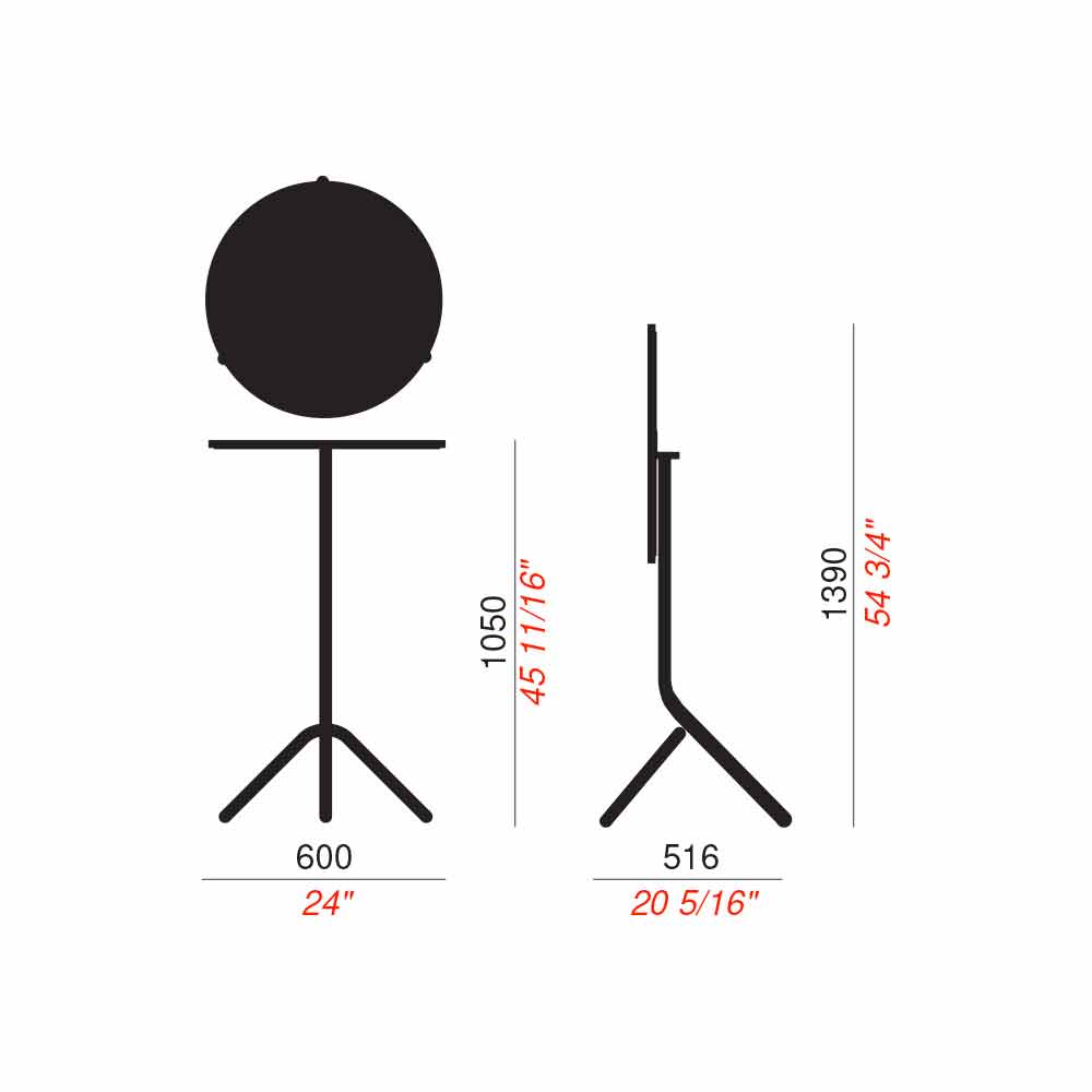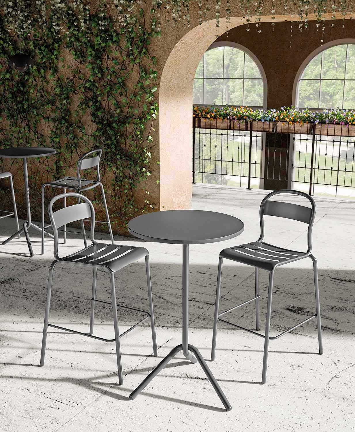 Mesa alta redonda apilable y plegable para exteriores de metal y chapa Hecho en Italia.