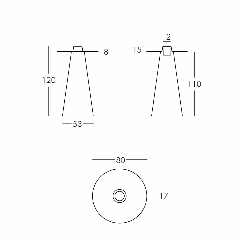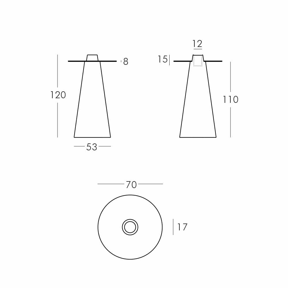 Consta de una base cónica de polietileno y una tapa circular de cristal templado. Particularidad no indiferente es el compartimento central para botellas, un detalle que puede marcar la diferencia en ocasiones especiales.