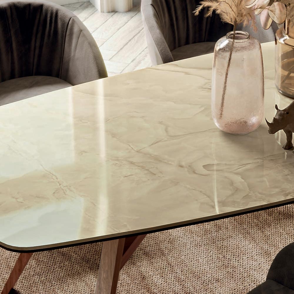 - Arabesco de ensueño pulido (espesor vidrio 10 mm + cerámica 6 mm)