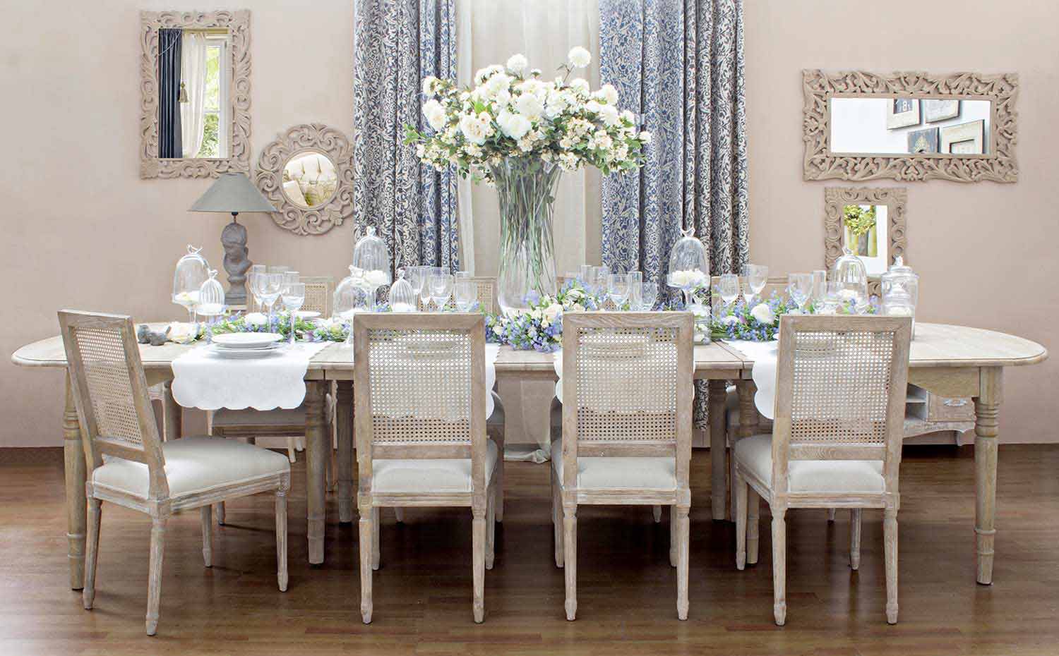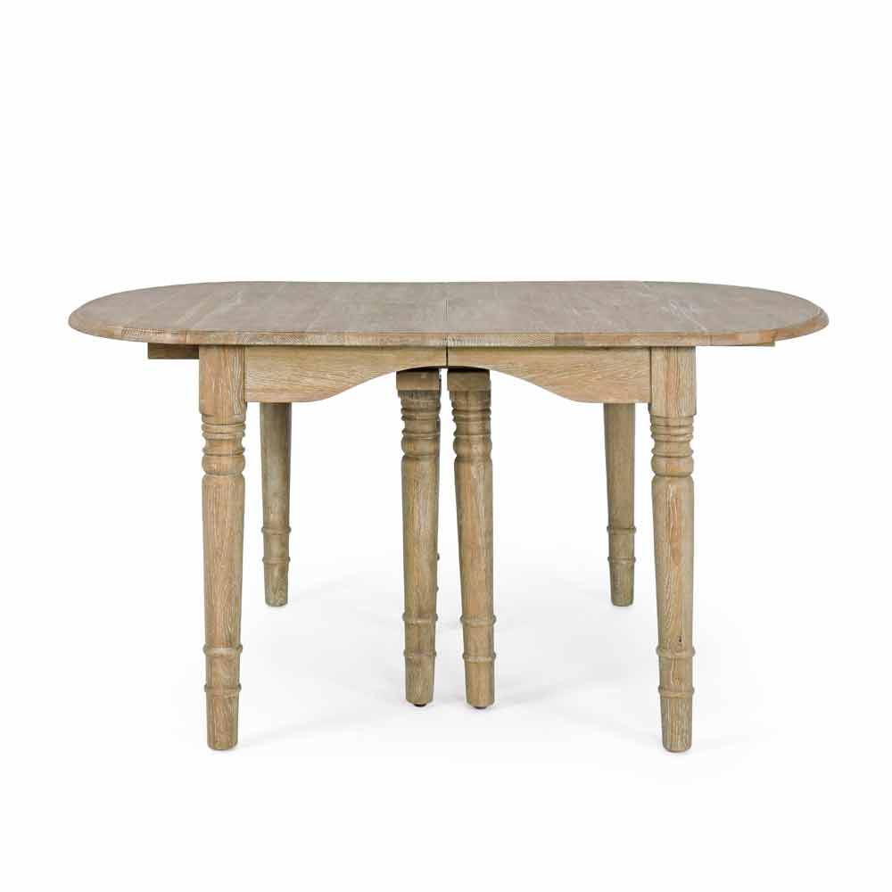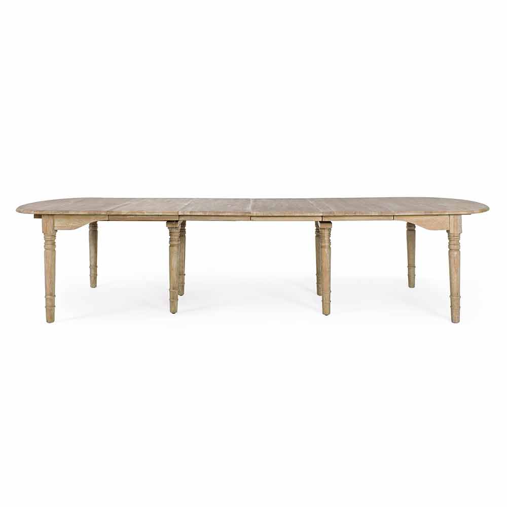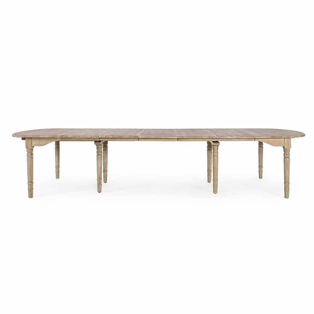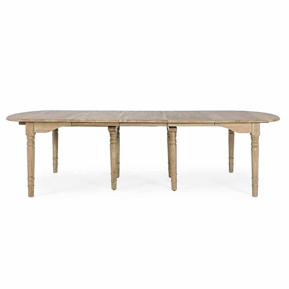 Mesa de comedor extensible hasta 382 cm fabricada en madera maciza de roble.