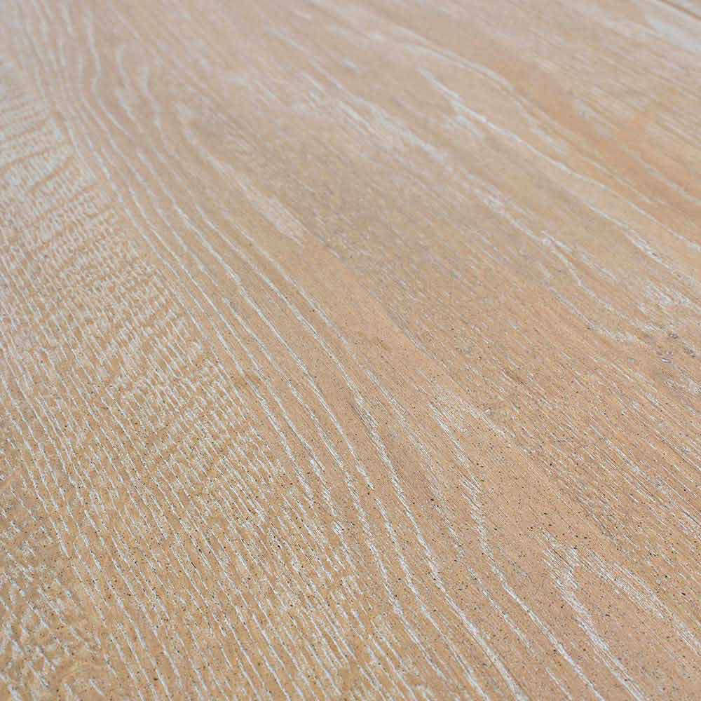 Madera maciza de roble europeo con barniz al agua y acabado envejecido y encerado.