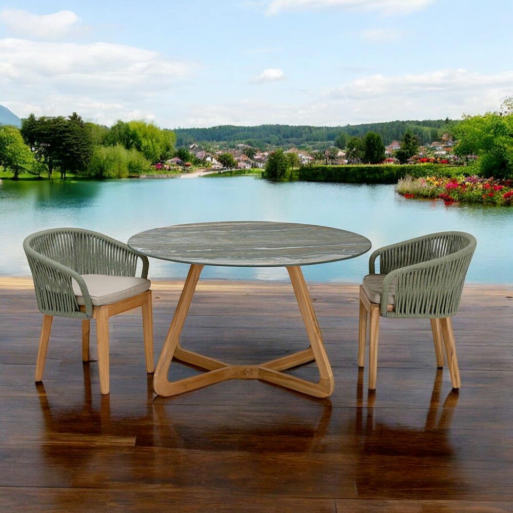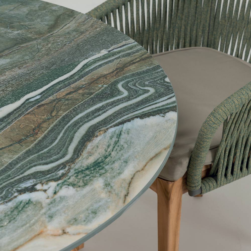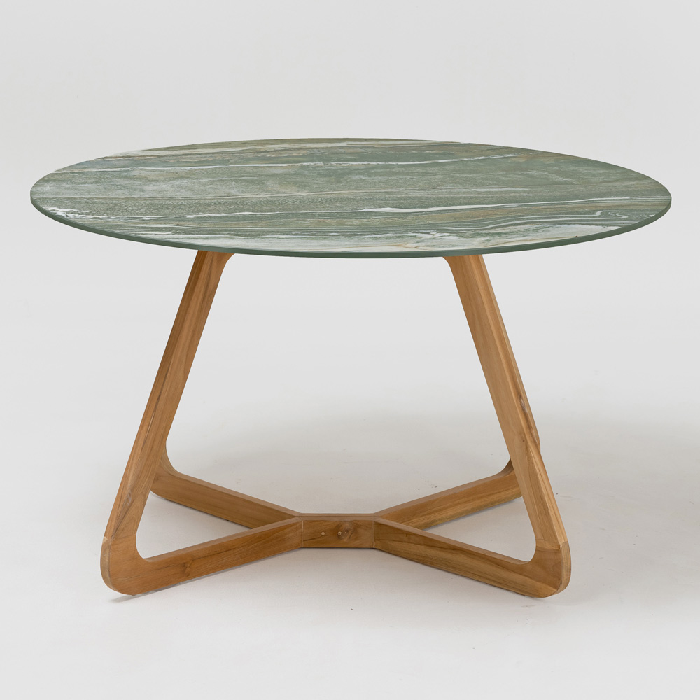 Mesa con tapa de cerámica y base de teca Made in Italy - Casco