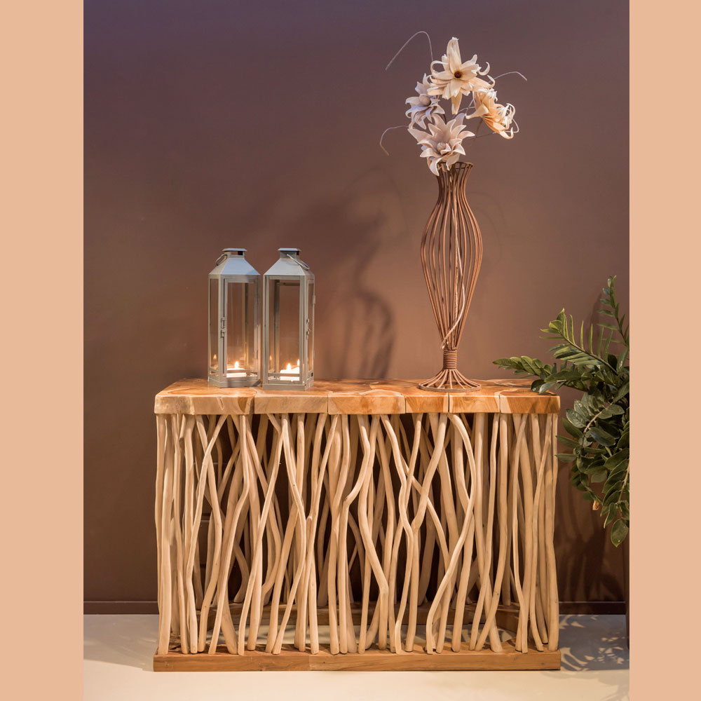La artesanía y el uso de la madera en su forma más auténtica hacen de cada consola una pieza única, en la que las vetas y las irregularidades naturales se convierten en elementos de gran valor estético.