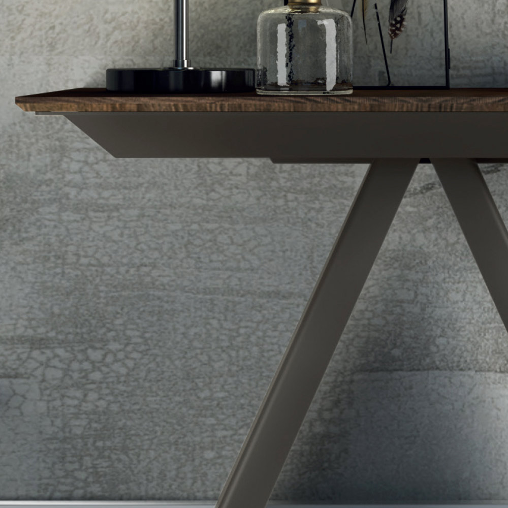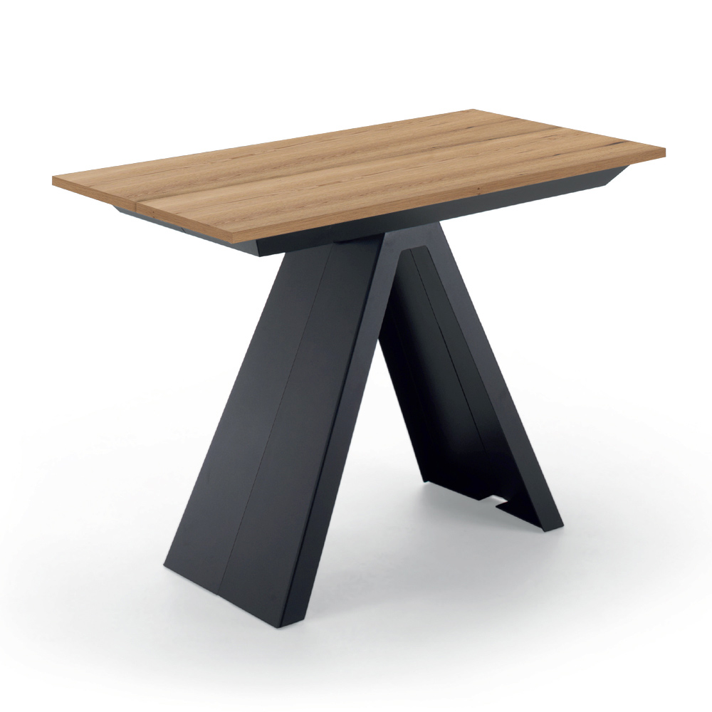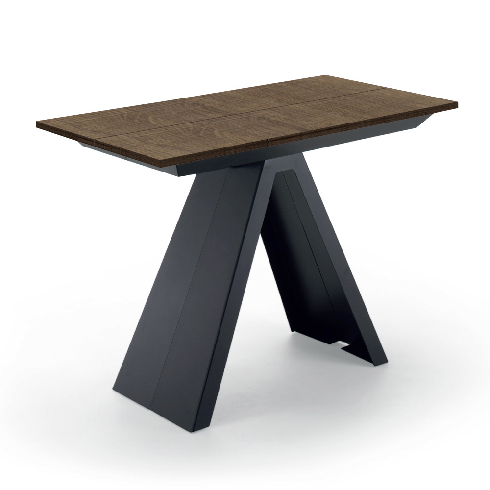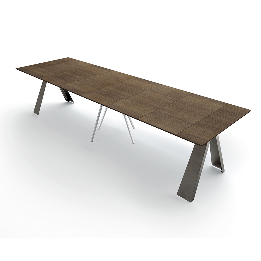 Consola de diseño extensible hasta 14 plazas en madera laminada y acero fabricada en Italia.