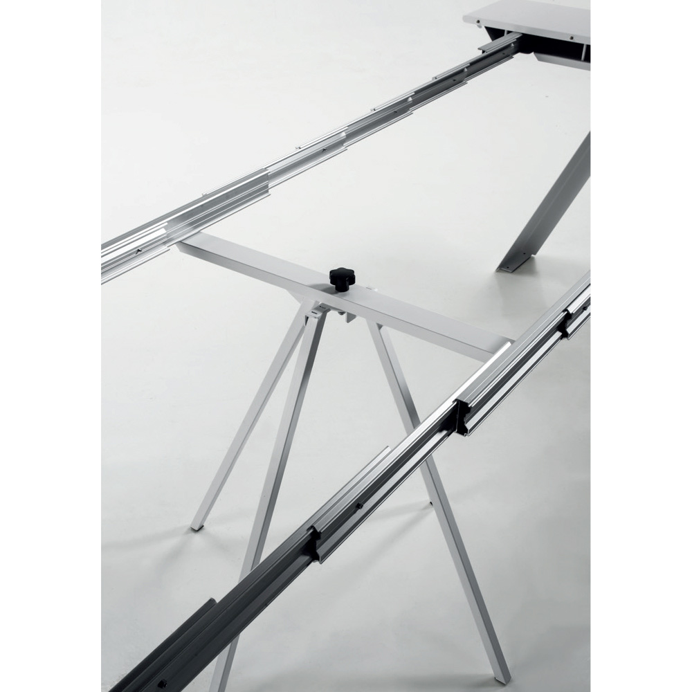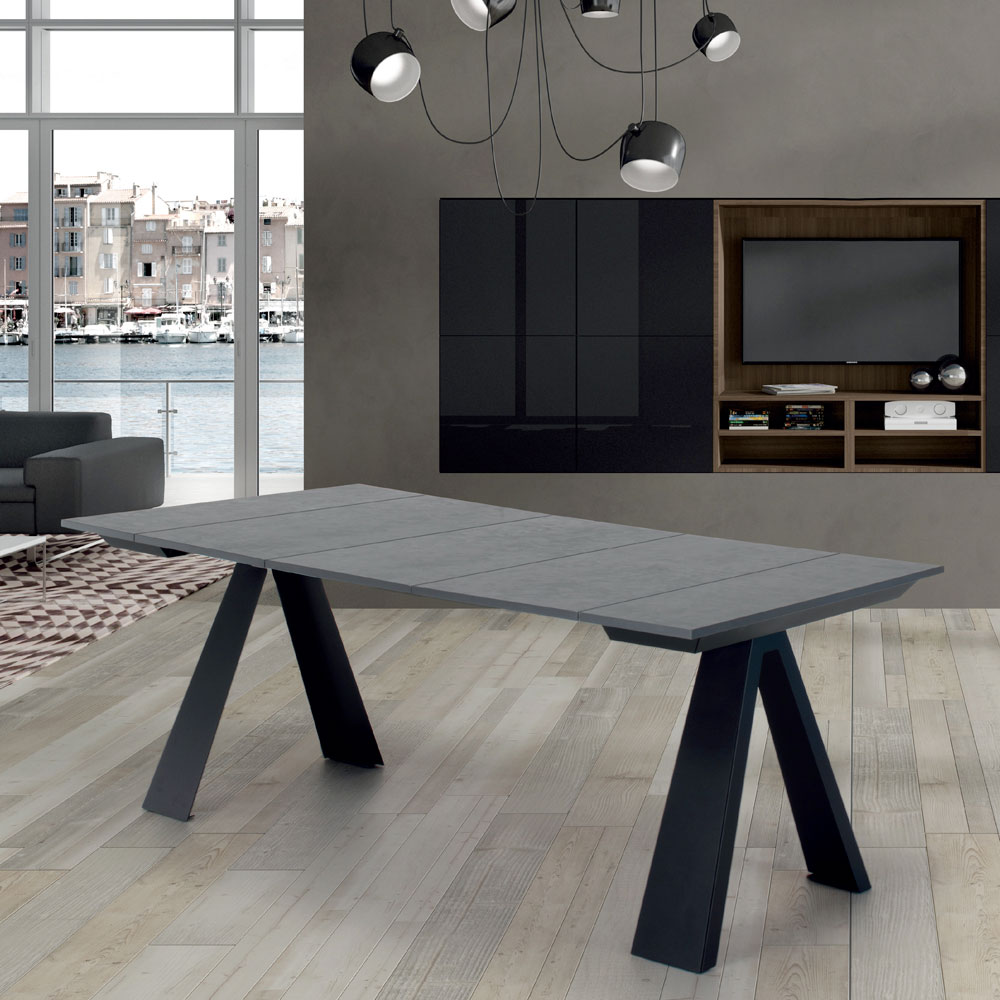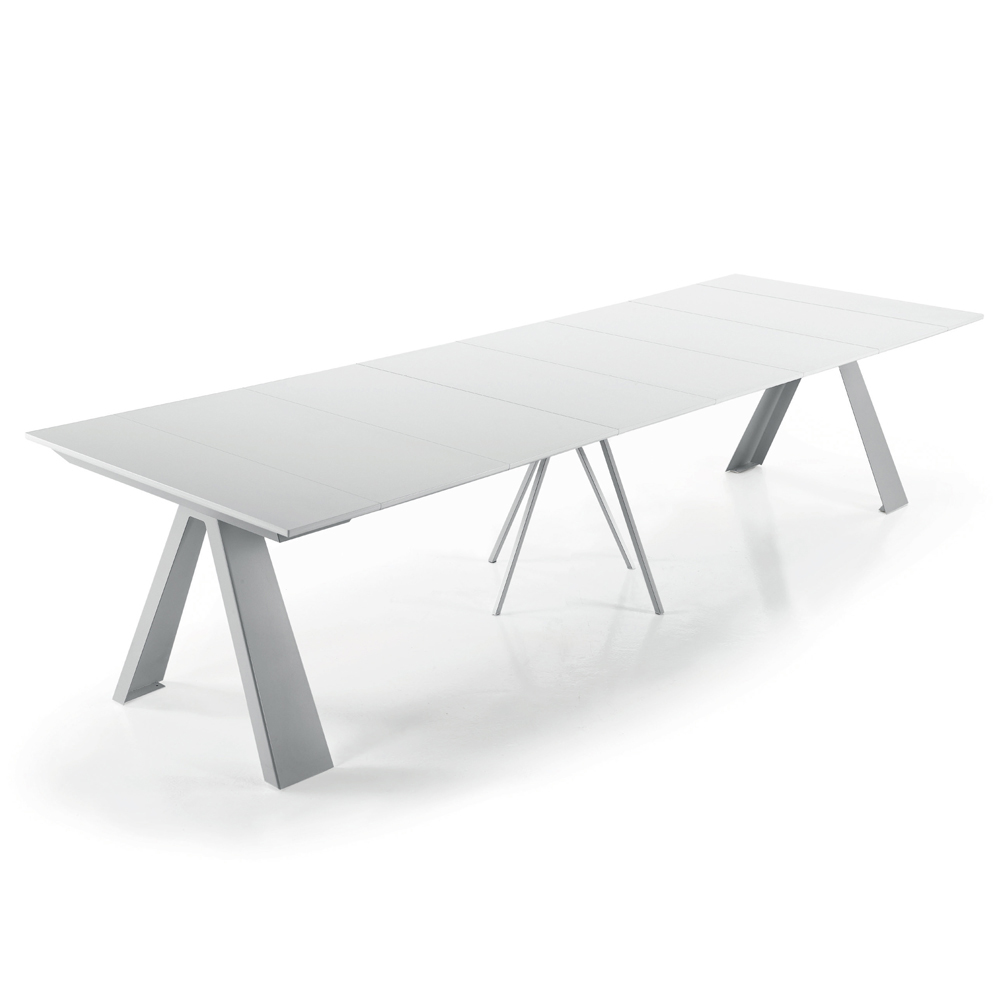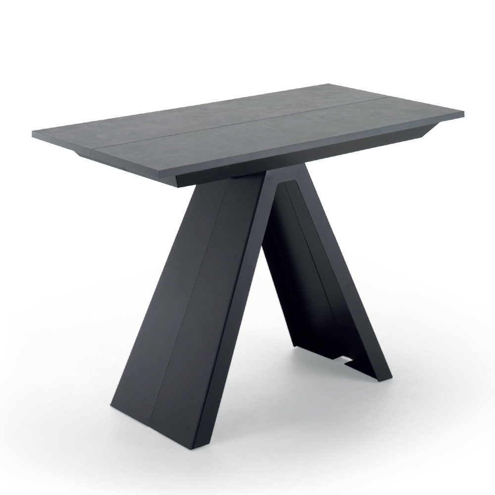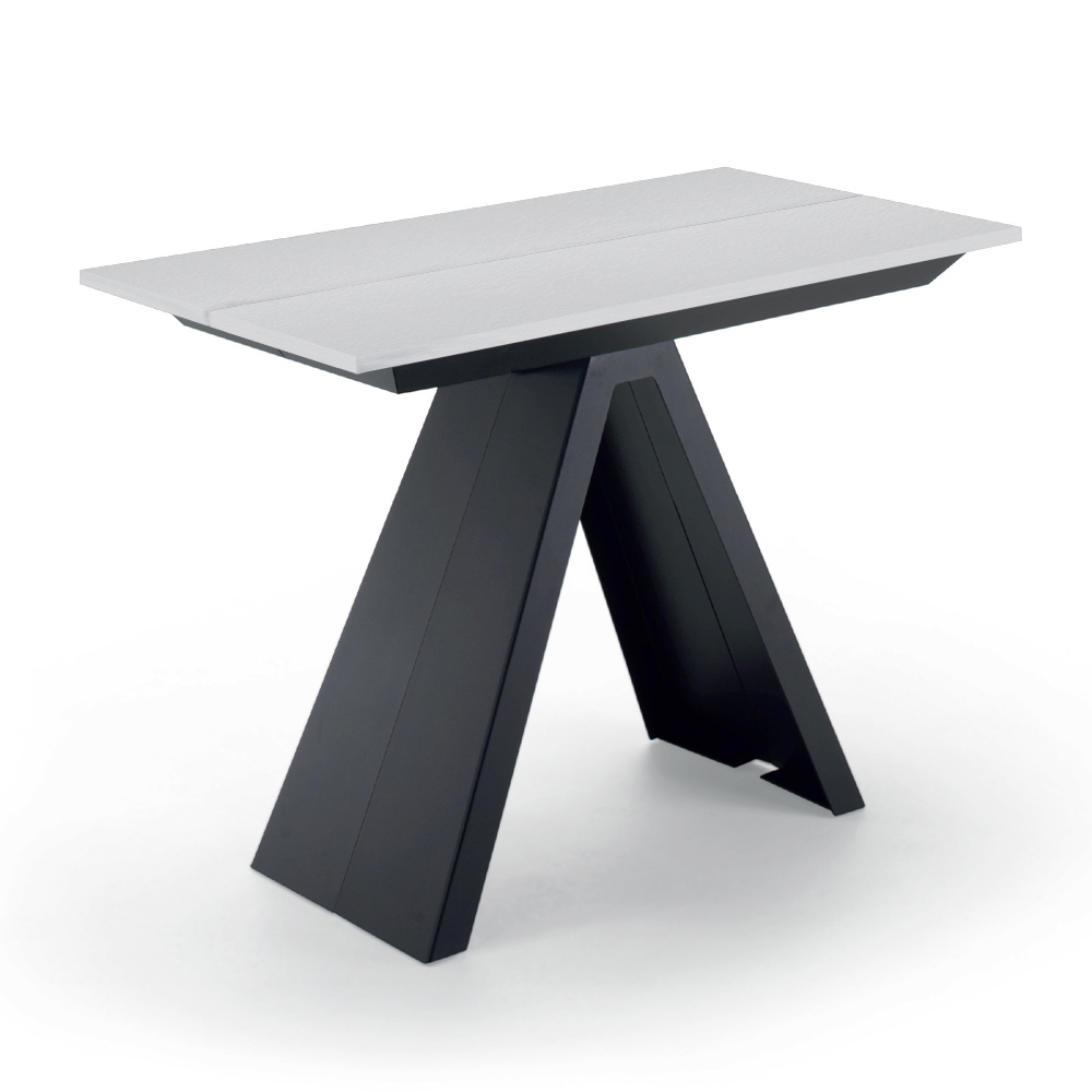 Consola de diseño extensible hasta 14 plazas en madera laminada y acero fabricada en Italia.