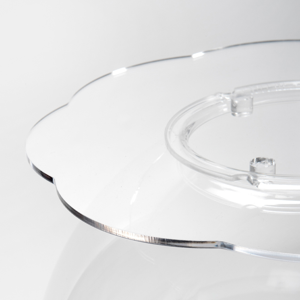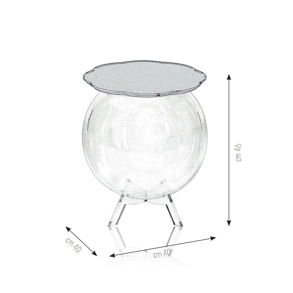 Su forma esférica, atrevida y pura, se transforma según tus necesidades: hoy un elegante jarrón para tus composiciones florales, mañana un original acuario que dará nueva vida a tu entorno, o un práctico contenedor para juguetes o ropa sucia que podrás guardar discretamente. Su transparencia es una invitación a expresar la creatividad, a llenar y decorar según la inspiración del momento, sin apelmazar nunca el ambiente.