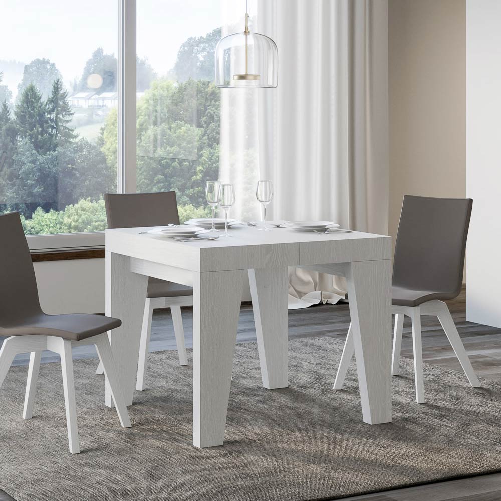 Made in Italy. Las extensiones se pueden insertar progresivamente, permitiendo configuraciones de longitud intermedia, por lo que puedes elegir si utilizarlo con una, dos o tres extensiones según tus necesidades de espacio. Cuando no se utilizan, las extensiones deben guardarse en otro lugar y no encuentran sitio dentro de la estructura de la mesa.