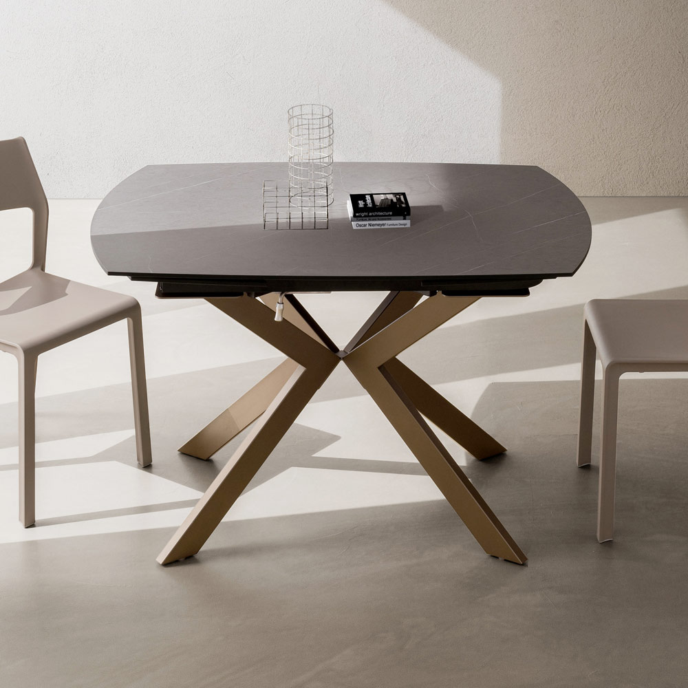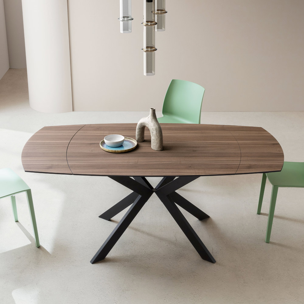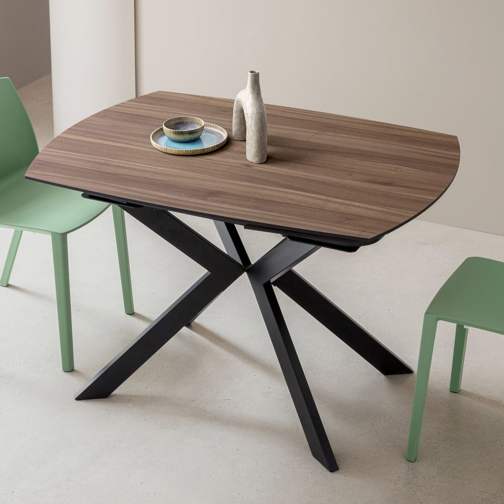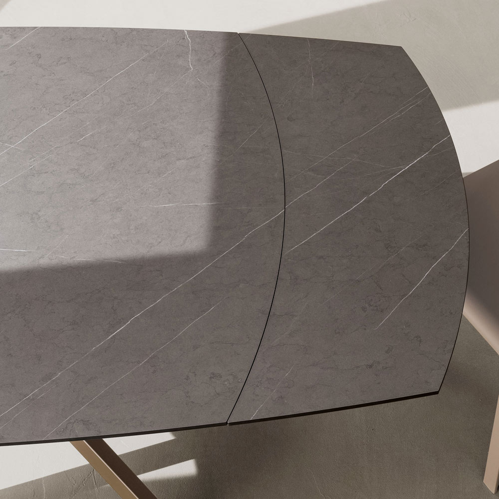 El tablero de HPL es elegante y resistente . Gracias al mecanismo de extensión , la mesa se extiende con facilidad y fluidez, pasando de una forma compacta a una más ancha, perfecta para recibir a los invitados con comodidad.