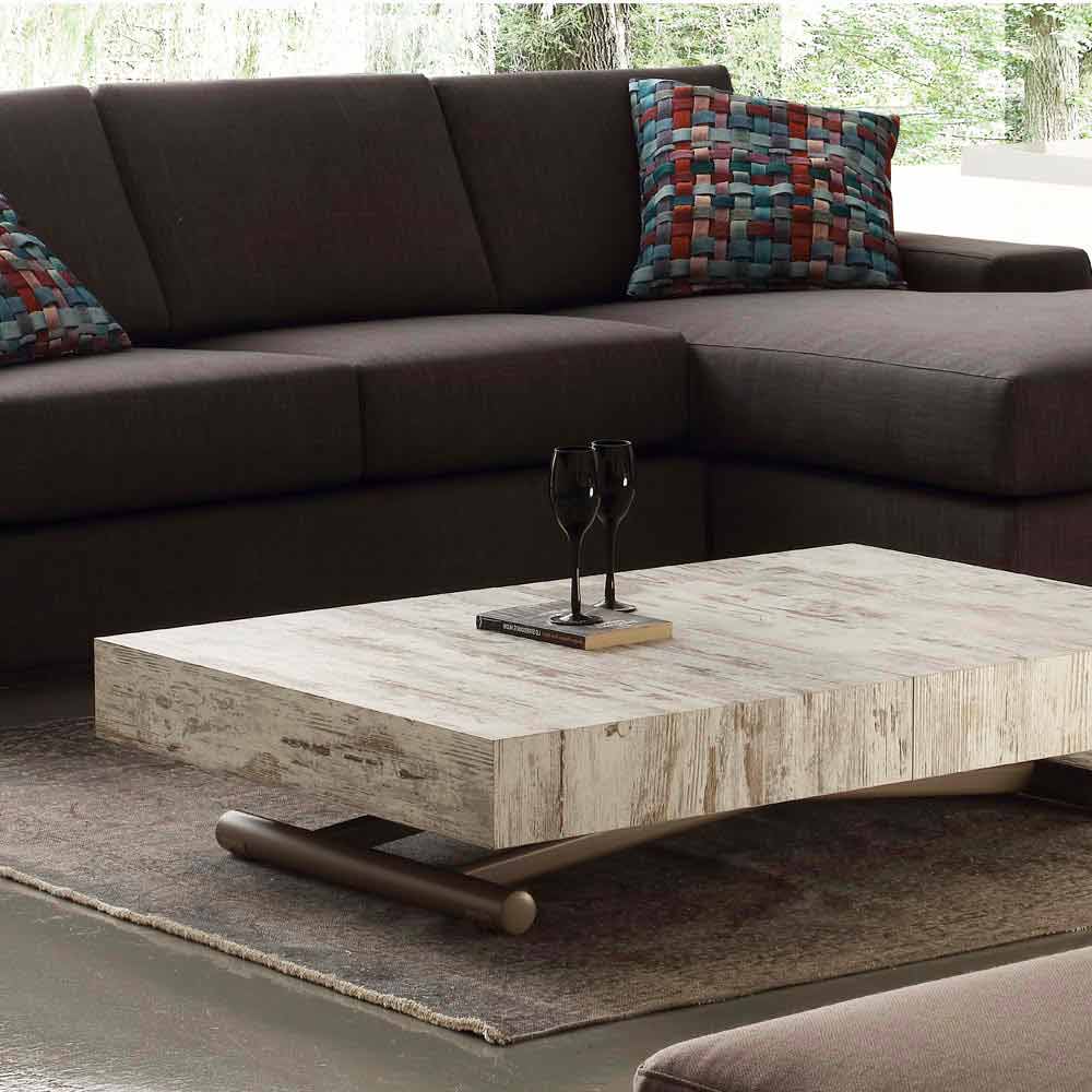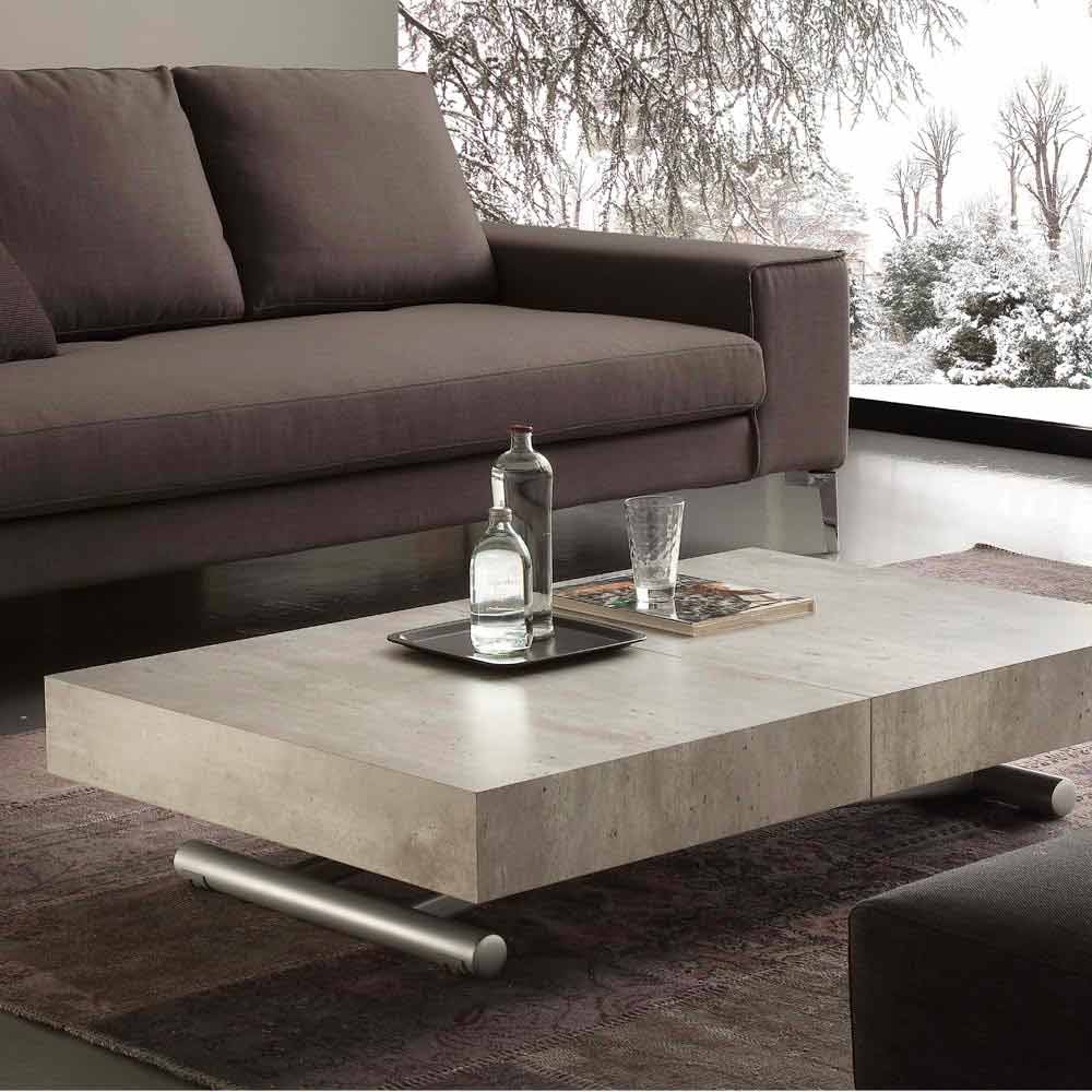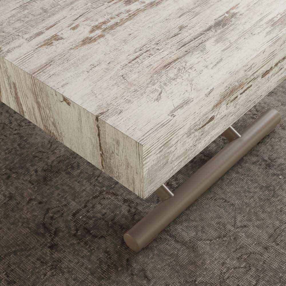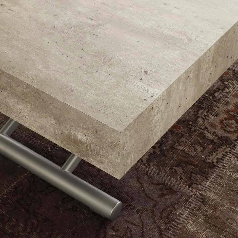Palau se puede utilizar como mesa de centro o como práctica mesa de comedor. Estructura de metal y tablero de melamina de alta calidad, disponible en dos acabados diferentes: look cemento o look vintage. La base de la mesa no interferirá con las patas de sus invitados.