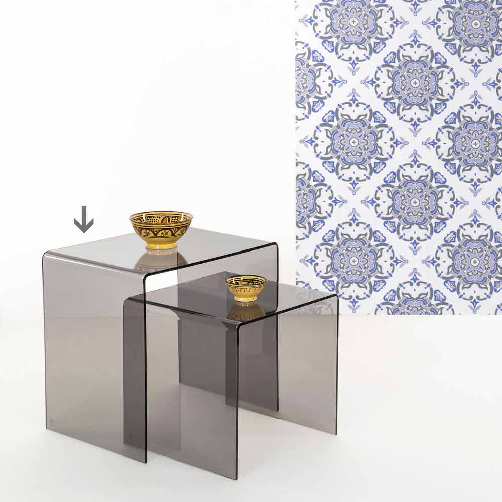 Mesa de centro ahumada de diseño moderno 50x50cm Terry Big, hecho en Italia Mesita / mesita de noche transparente, ahumada y versátil, inspirada en la geometría de los años 80, en plexiglás de PMMA de polímero 100% virgen, cortado con láser y doblado a altas temperaturas. El importante espesor hace que la estructura sea totalmente autosuficiente. Se puede vender de forma individual, pero es perfecto si se combina con los gemelos TERRY SMALL. El plexiglás es a prueba de golpes, indeformable, inalterable y aislante del calor. El brillo y el brillo se mantienen constantes y sin cambios a lo largo del tiempo. El plexiglás de PMMA de polímero virgen utilizado por es no tóxico, hipoalergénico, inodoro y antibacteriano. 100% reciclable Diseñado, diseñado y fabricado en Italia, con materiales italianos.