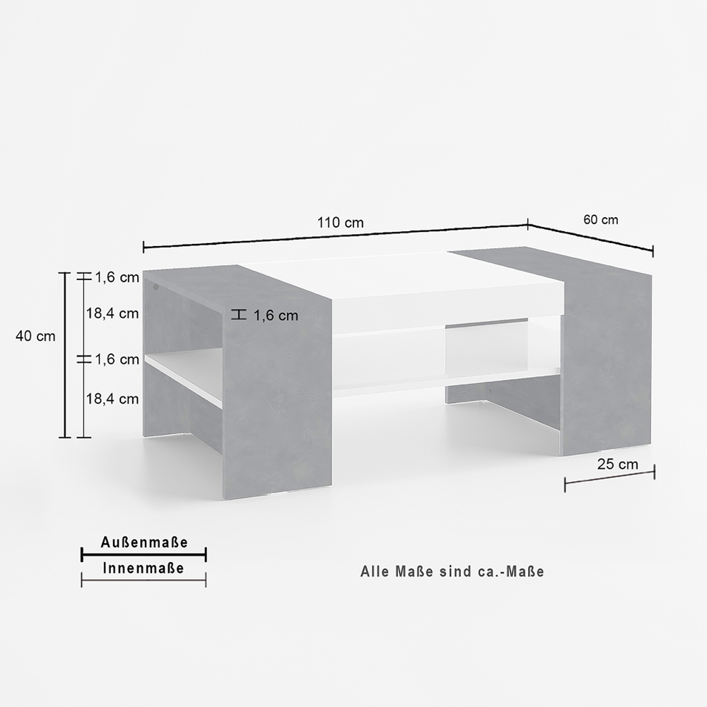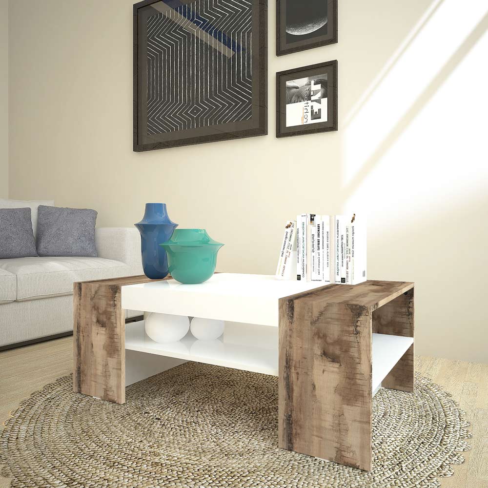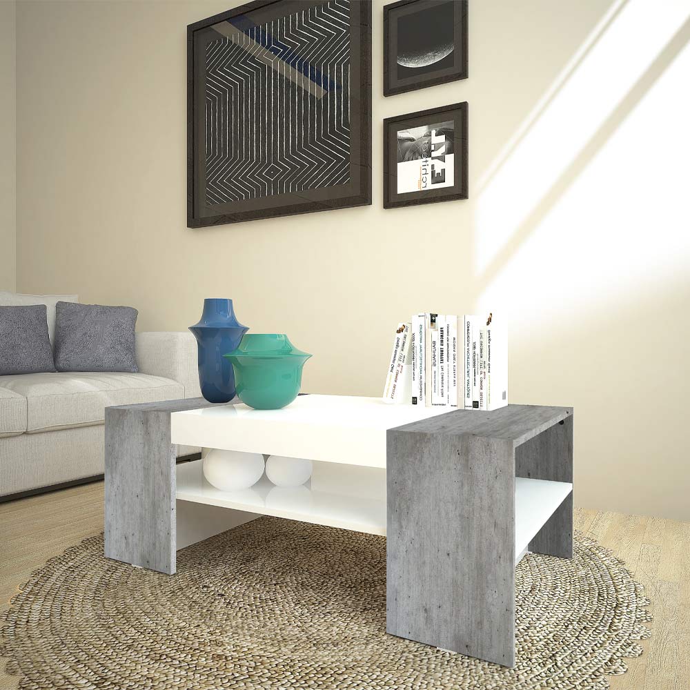 Mesa de centro para el salón en madera blanca brillante 3 acabados made in Italy.