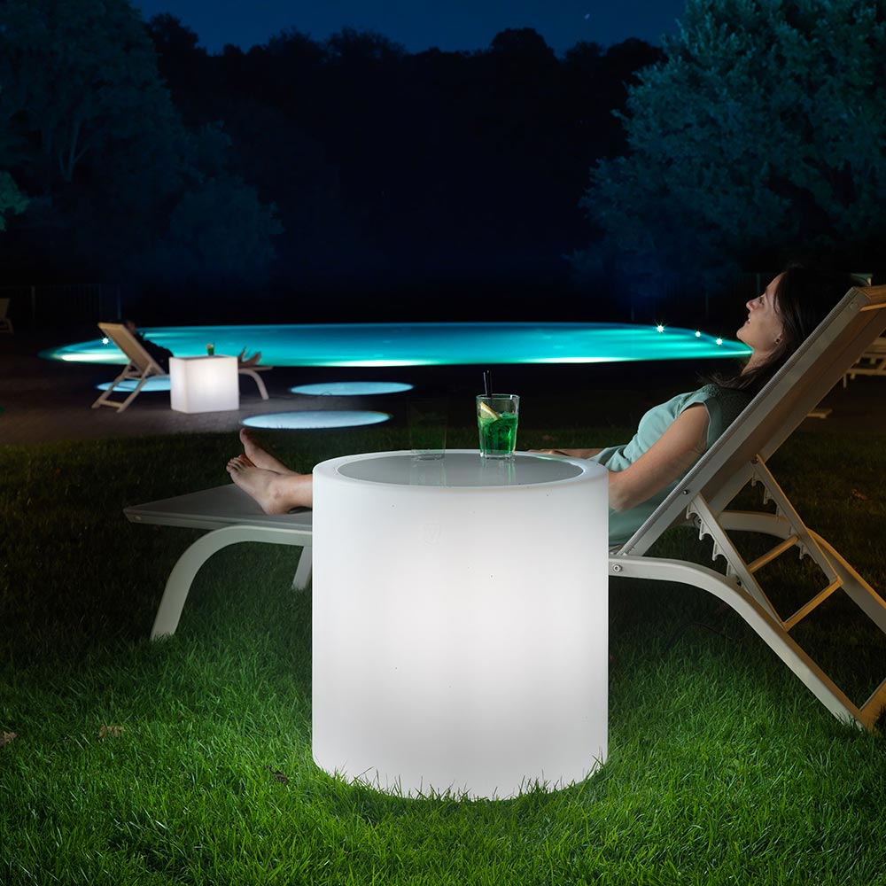 Mesa de centro de jardín luminosa en polietileno perlado Made in Italy