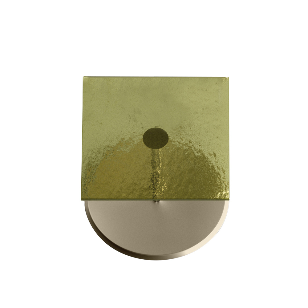 - tapa de cristal fundido verde oliva y base de metal champagne