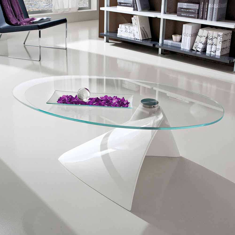 toque extremadamente cautivador . La elegancia atemporal del cristal se combina con el toque refinado de la base de mármol lacado en acabado brillante para dar vida a una mesa de centro única en su tipo, que se vuelve aún más única por la maravillosa serigrafía en la parte superior que sigue. sus líneas y formas. El resultado final será un