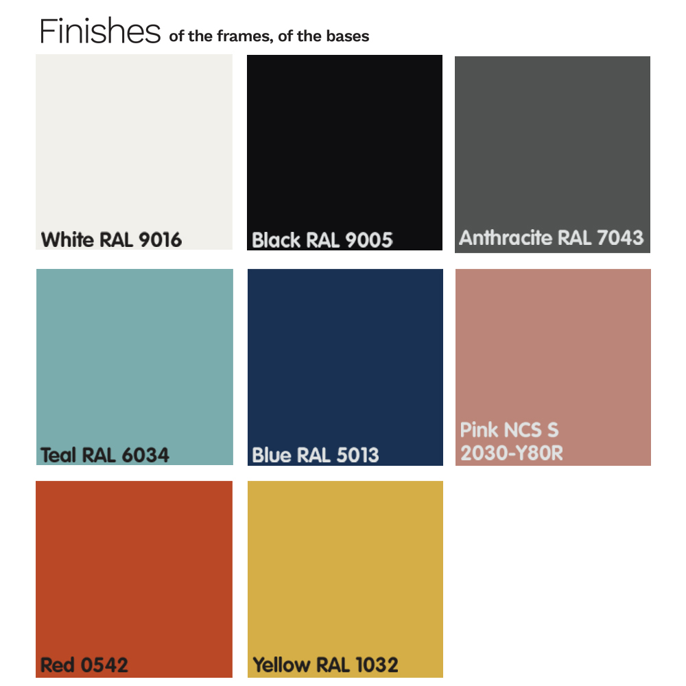 NB : la estructura y la tapa están disponibles en una amplia gama de diferentes acabados. La mesa de centro está disponible en 6 tamaños más.
