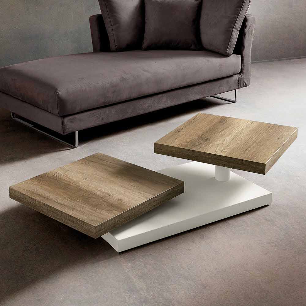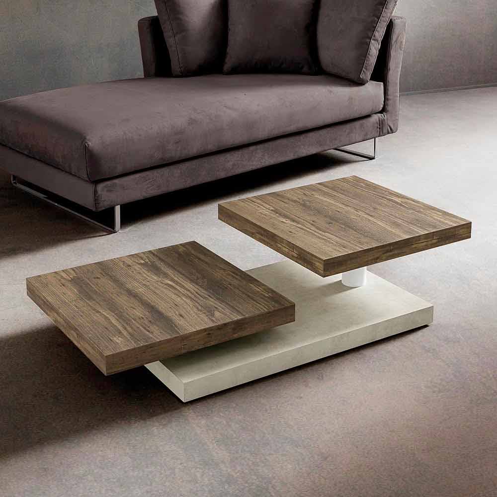 Mesa de centro con dos tapas giratorias fabricada en Italia, de alta calidad.