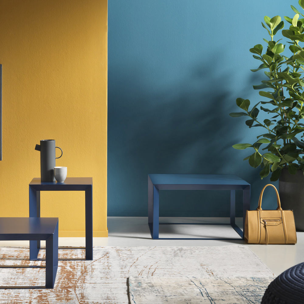 Disponible en dos tamaños diferentes, su formato cuadrado es ideal como mesita auxiliar para el salón, pero también como mesita de noche para dar un toque de color, estilo y diseño al dormitorio.