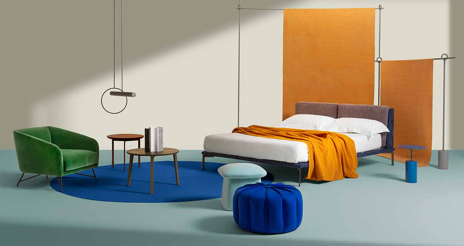 diferentes tamaños disponibles se pueden combinar o colocar individualmente en el espacio, en un diálogo mutuo con el entorno moderno circundante, válido tanto para el espacio habitable como para el dormitorio.