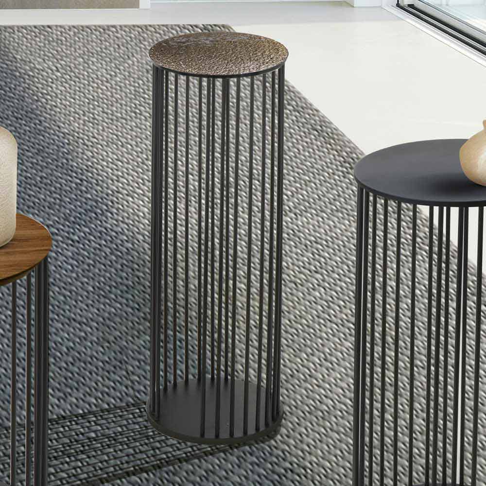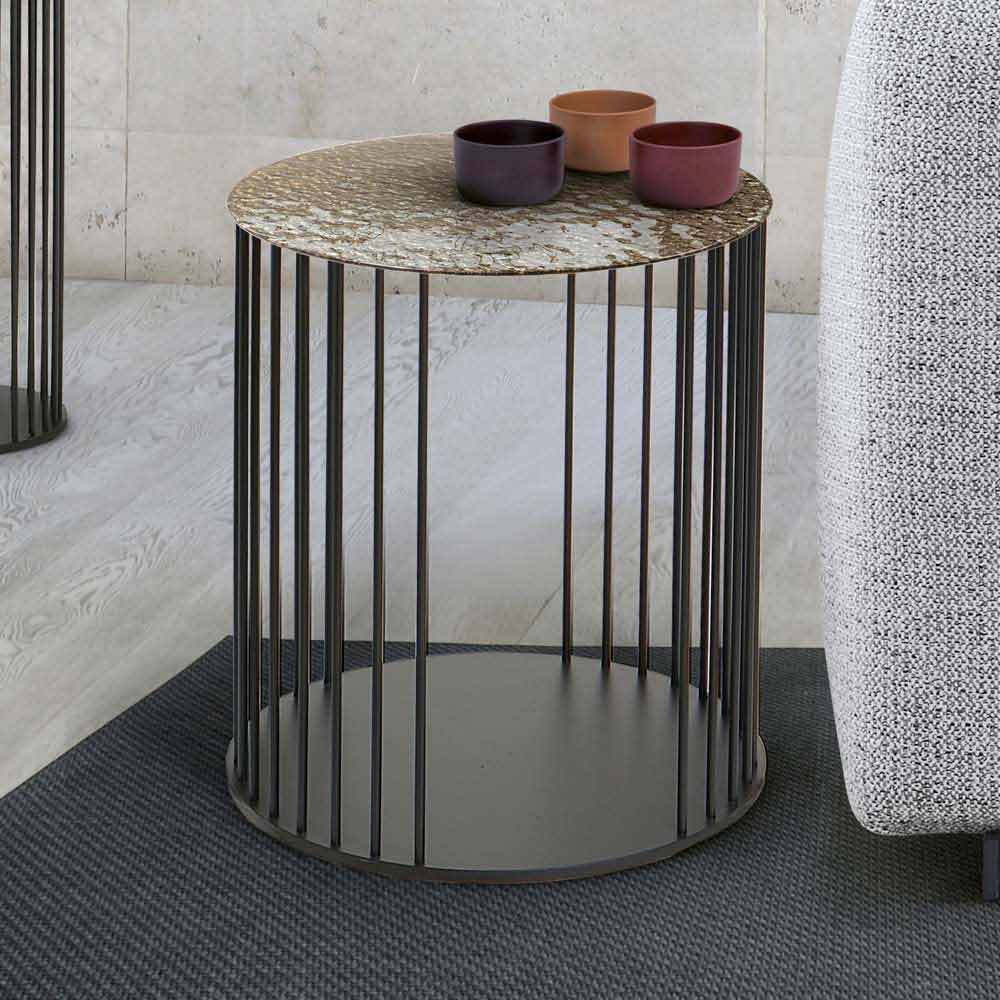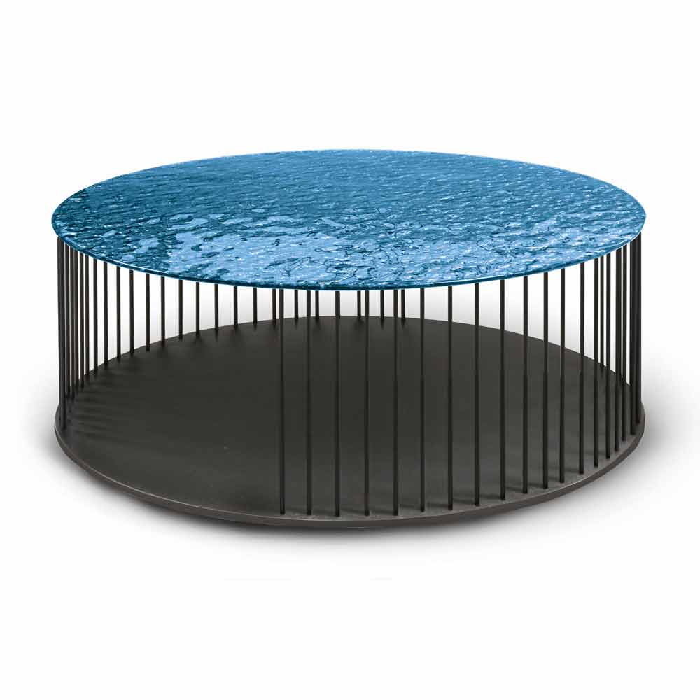 Mesa de centro en cristal forjado y metal negro Made in Italy.