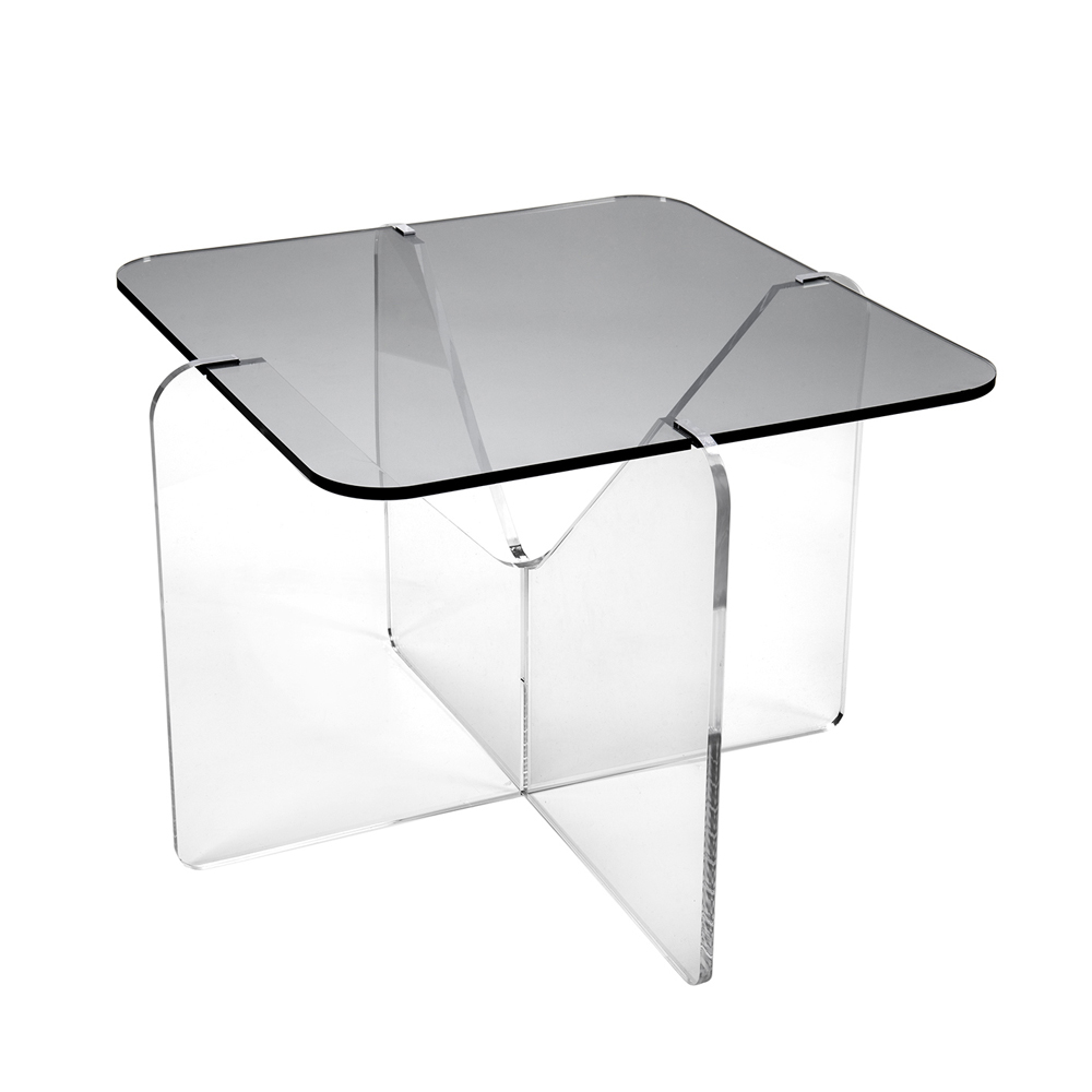 Mesa de centro en plexiglás transparente o con tapa ahumada, diseño cuadrado made in Italy.