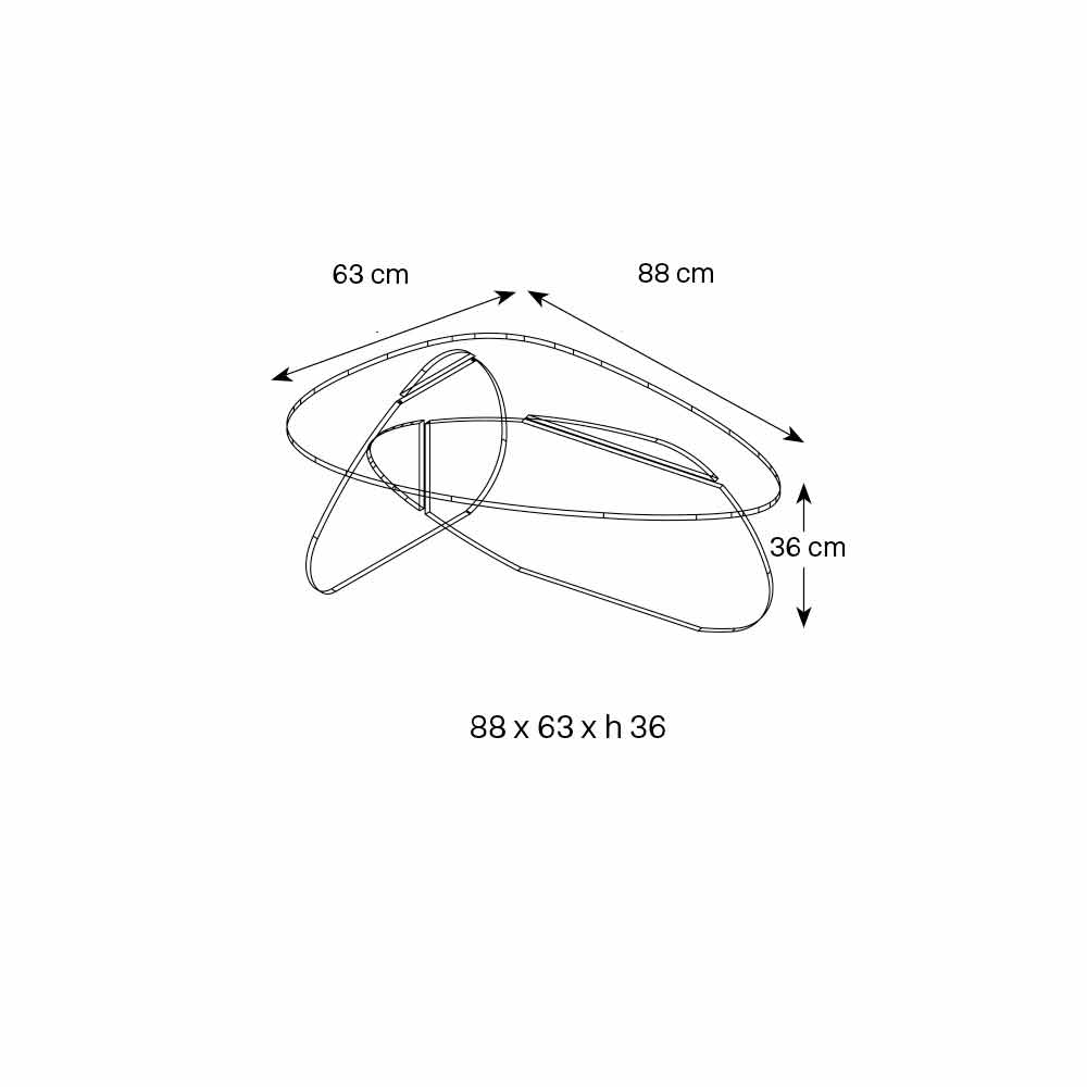 vidrio transparente, ahumado y grabado (12 mm de espesor) que parecen cruzarse entre sí formando el volumen de la mesa.