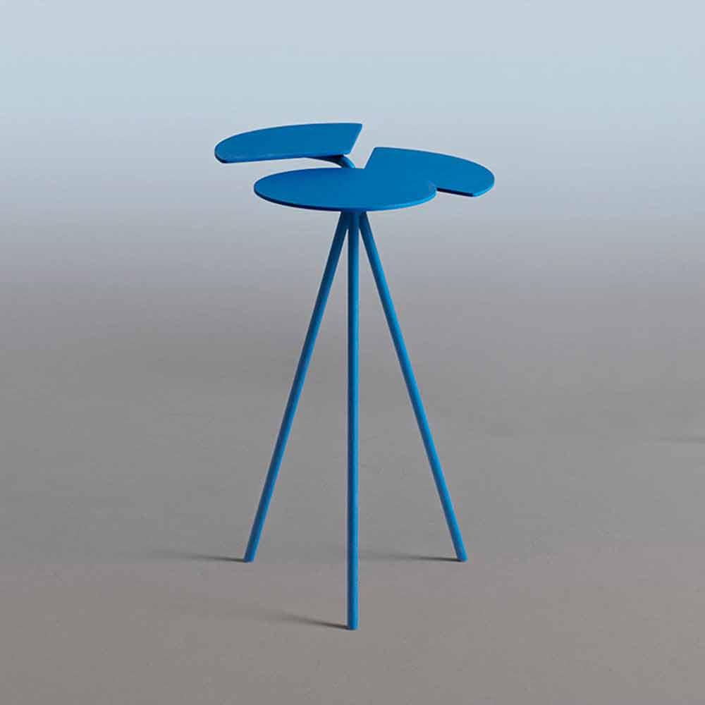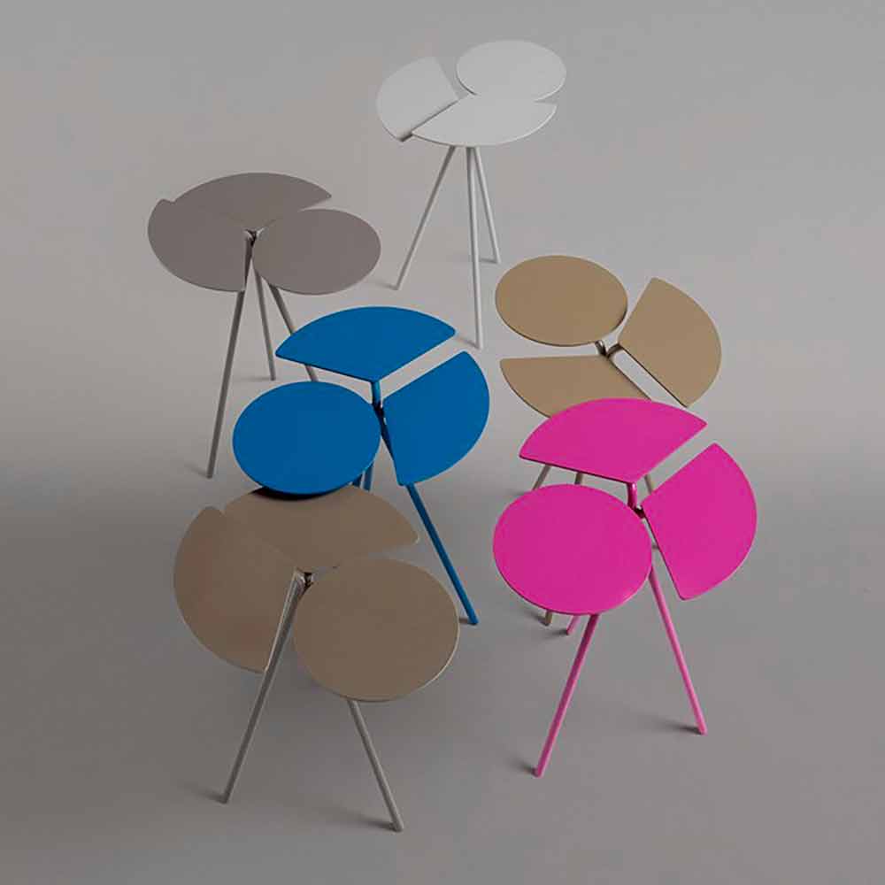 Mesita trípode redonda para salón, diseño moderno en chapa lacada en varios colores, tapa original fabricada en Italia.
