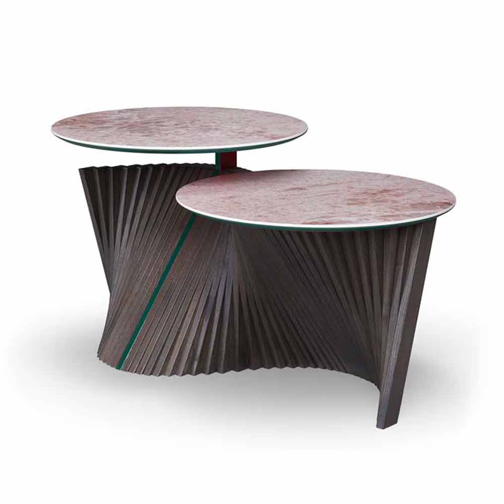 Mesa de centro de diseño en gres de mármol pulido y madera de fresno, un fino producto Made in Italy.