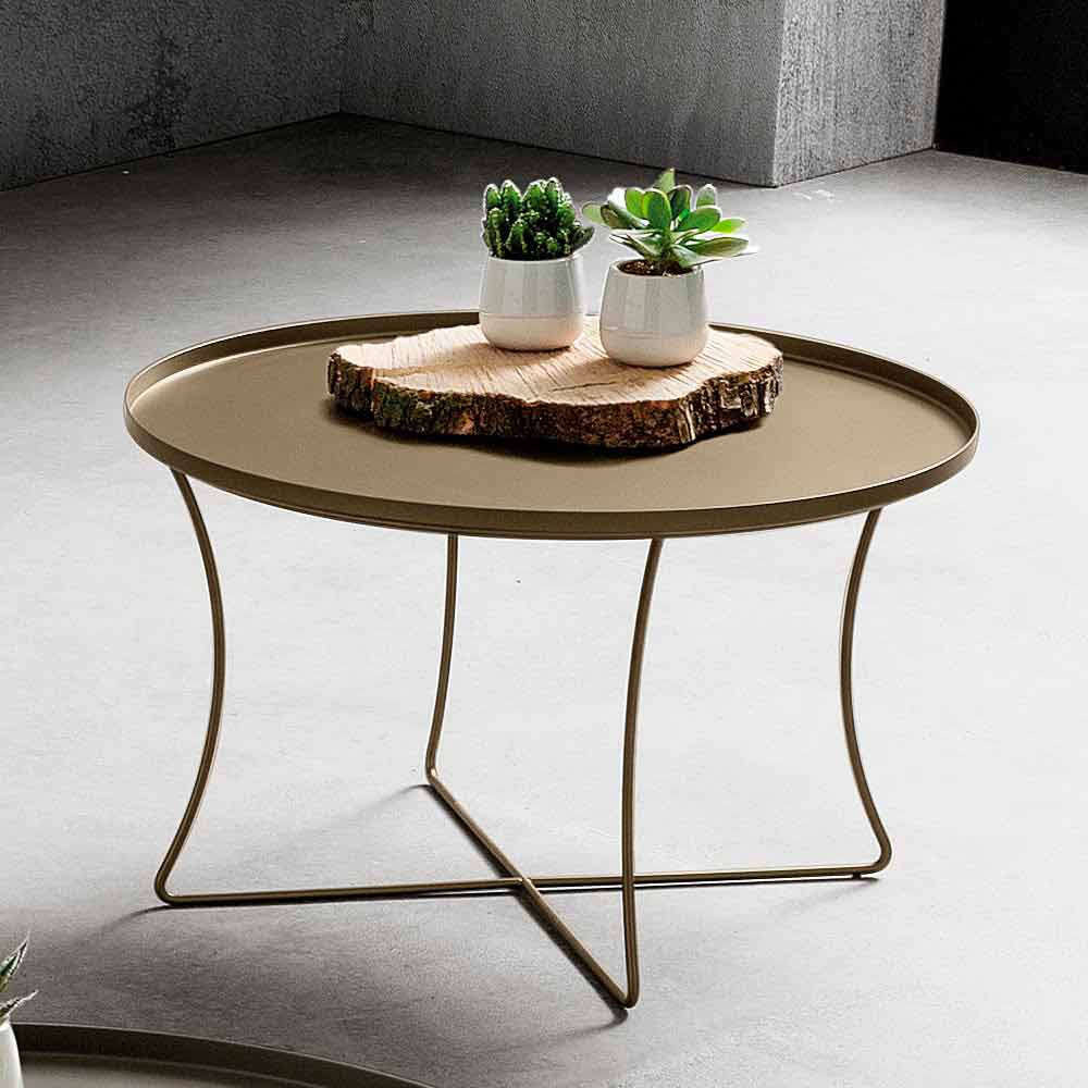 Mesa de centro redonda en metal pintado Made in Italy, alta calidad.