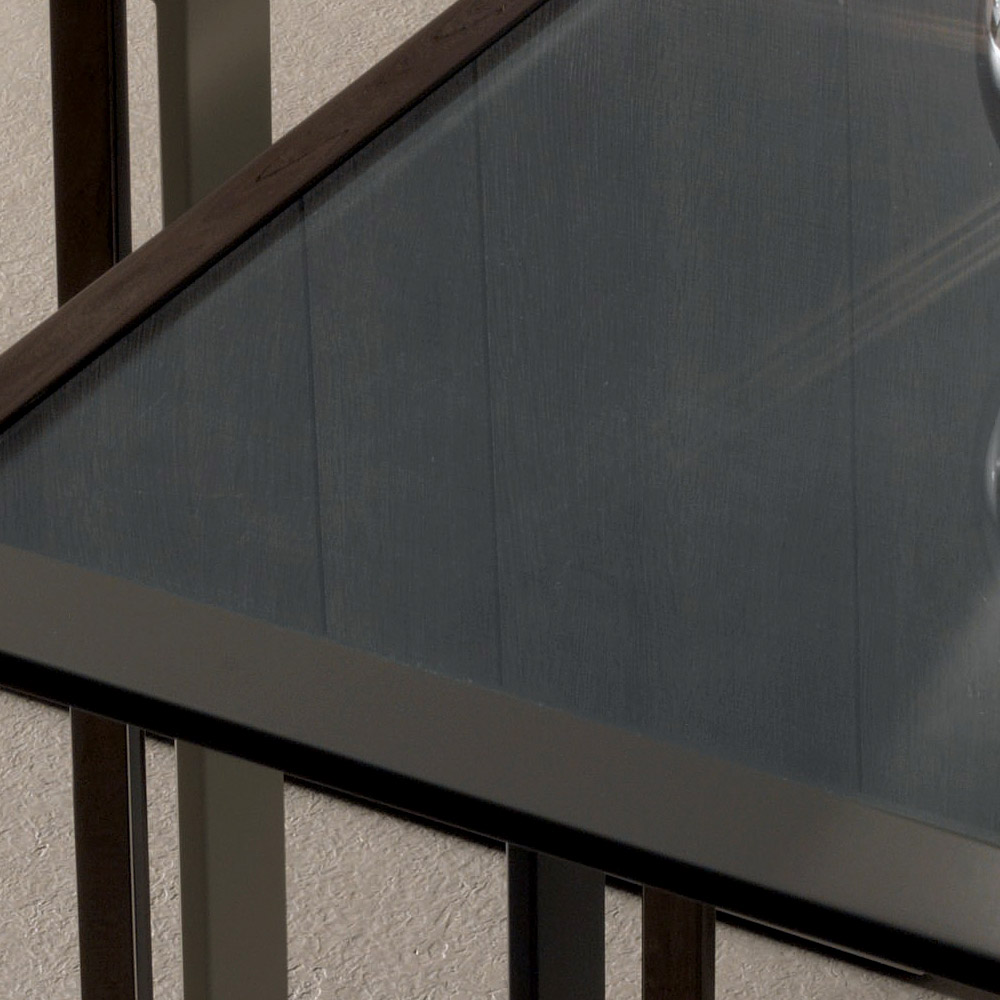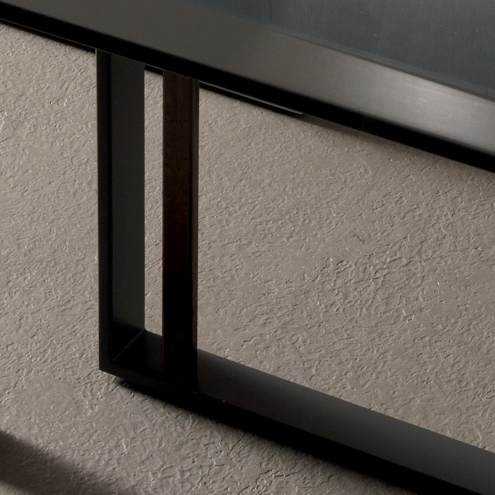 Mesa de centro en metal y tapa de cristal de diseño geométrico fabricada en Italia.