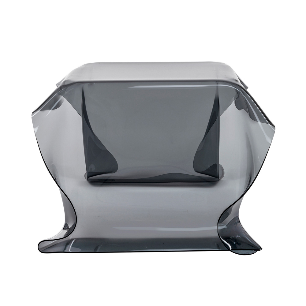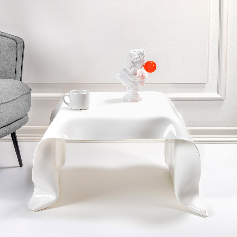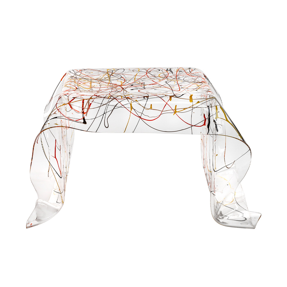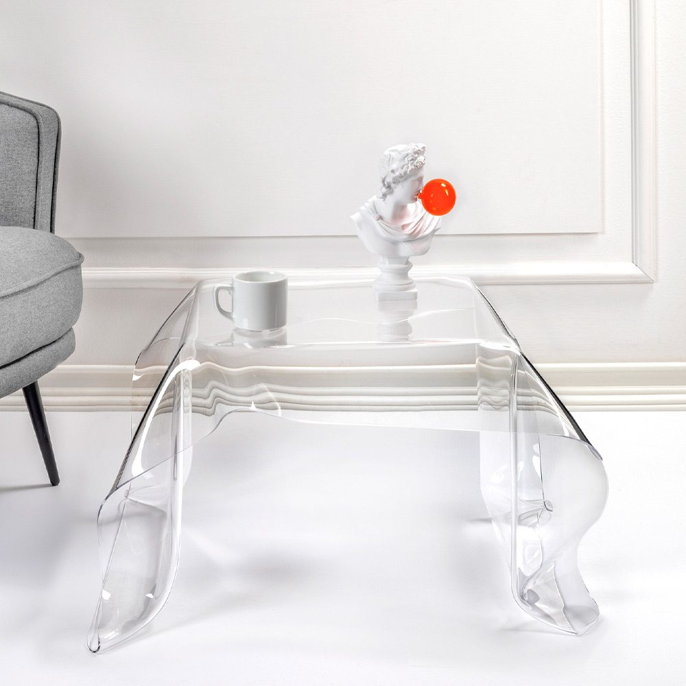 Realizada con una lámina de plexiglás de polímero PMMA 100% virgen , la mesa de centro es el resultado de un proceso artístico único: cada pieza es drapeada a mano a altas temperaturas , transformando el material en un objeto de estilo único e irrepetible. La técnica utilizada confiere a cada mesa de centro un carácter distintivo, casi como si cada curva contara la historia de su creación.