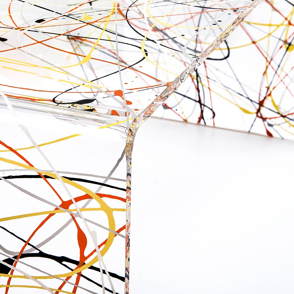 Mesa de centro de plexiglás transparente multicolor fabricada en Italia.