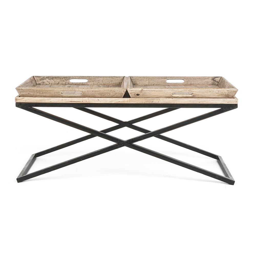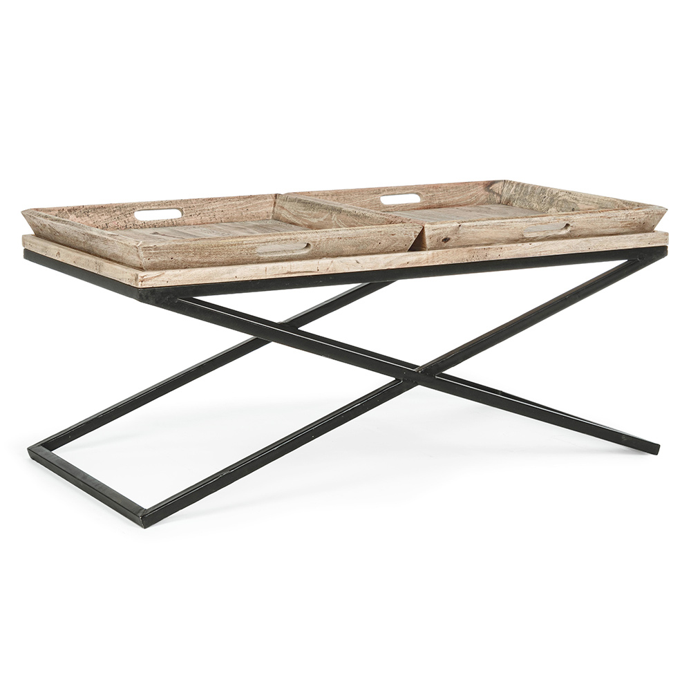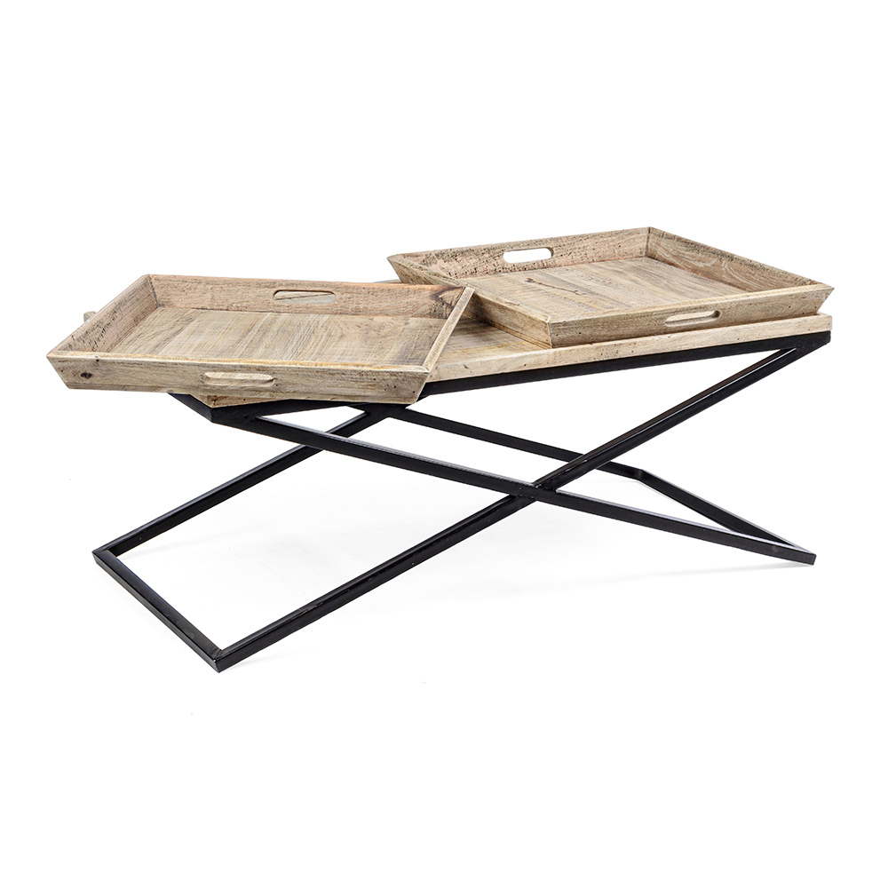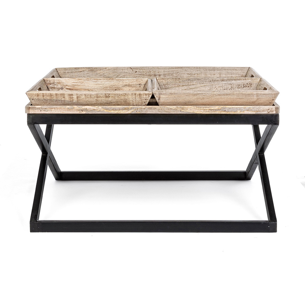 Mesa de centro en acero con bandeja en diseño de madera de mango - Cesira