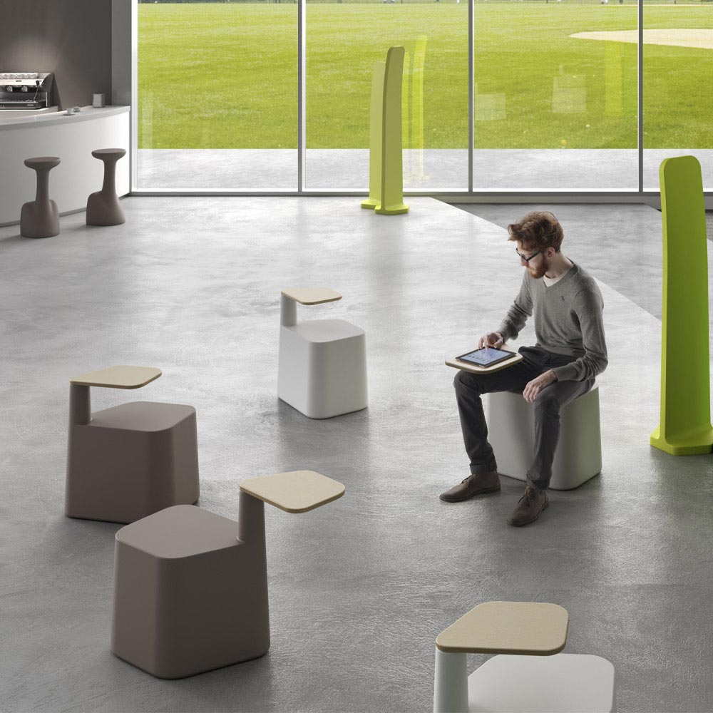 funcionalidad y practicidad para ofrecer una mesa inteligente ideal para paradas breves en entornos públicos concurridos como bares, áreas de relajación y espacios como salas de estudio, áreas de reunión, bibliotecas. Su estética está marcada por