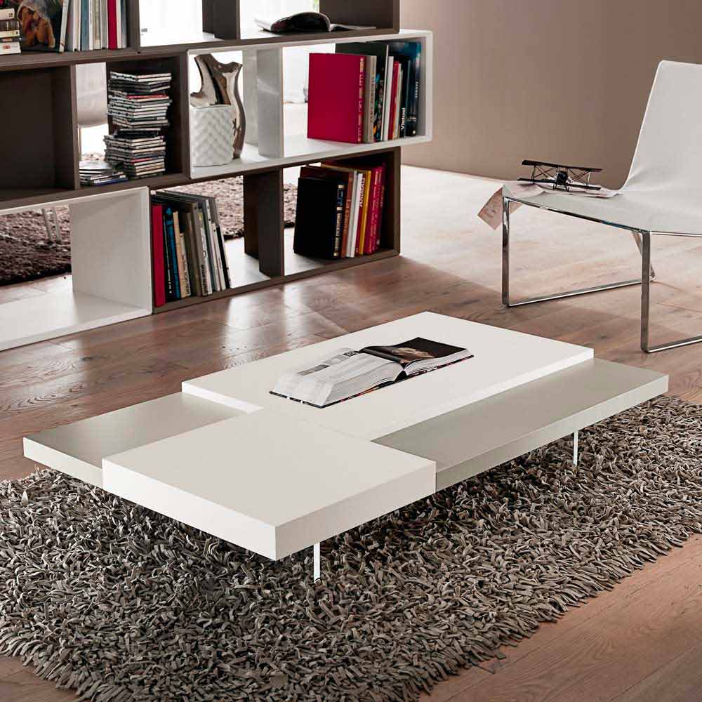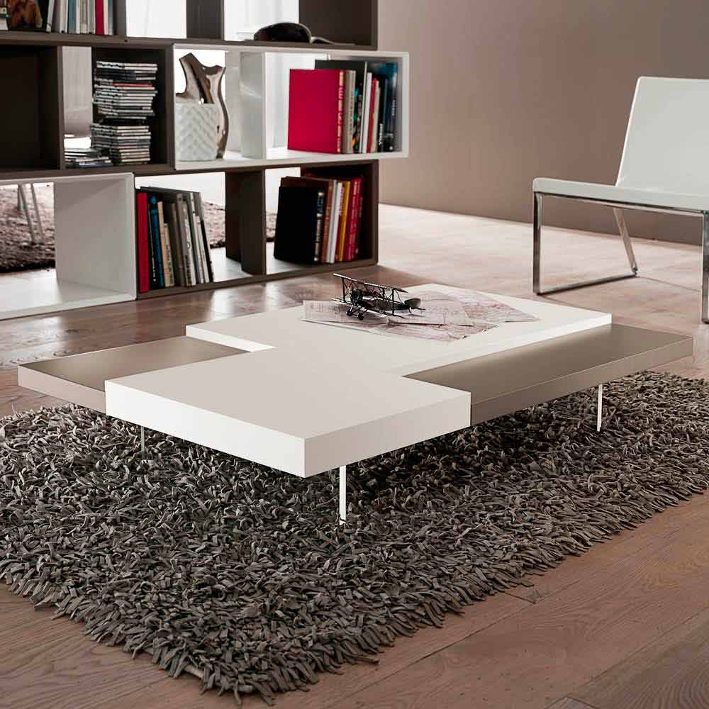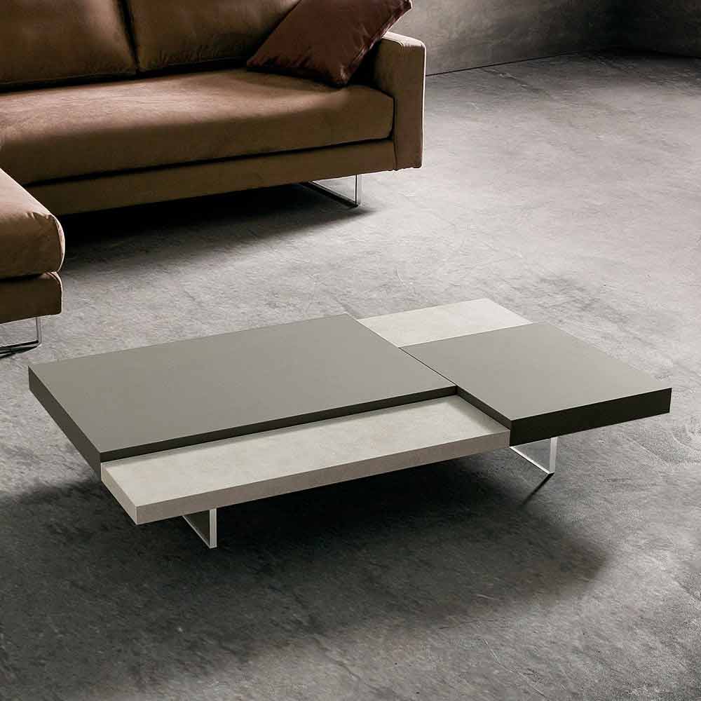 de polimetilmetacrilato transparente . En cualquier salón es imprescindible la presencia de una mesa de centro que, además de representar una superficie de apoyo práctica y funcional, da armonía al mobiliario y completa su estética gracias a líneas y formas cautivadoras y originales. Este mueble reúne todas las características fundamentales de una mesa de centro perfecta, demostrando ser una excelente idea para quienes aman decorar sus espacios con elementos con un estilo sencillo pero impactante. La forma particular de las tapas colocadas a diferentes alturas juega un papel importante en el diseño del producto ya que ofrece un exclusivo juego de contrastes. Además, la