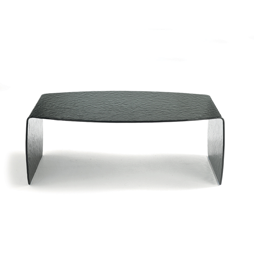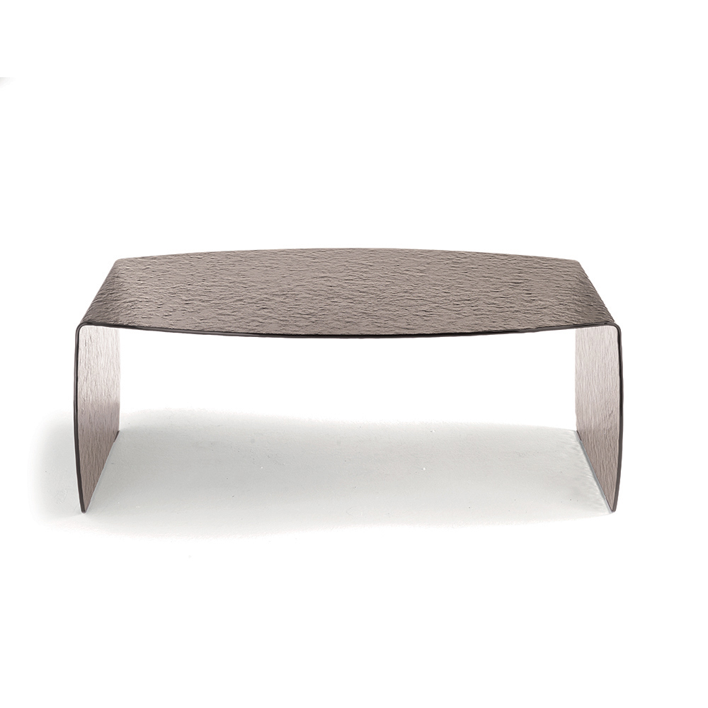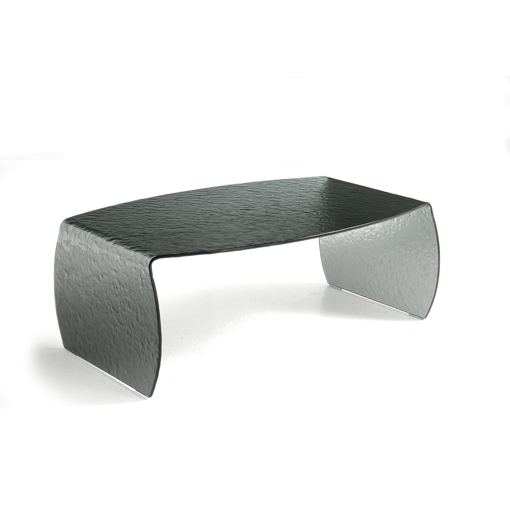 Fabricada a partir de una sola lámina de vidrio transparente curvado , esta mesa de centro presenta un acabado martillado que le aporta profundidad y crea un elegante juego de reflejos. La textura del vidrio realza la luz natural, haciendo que la habitación parezca más luminosa y espaciosa.