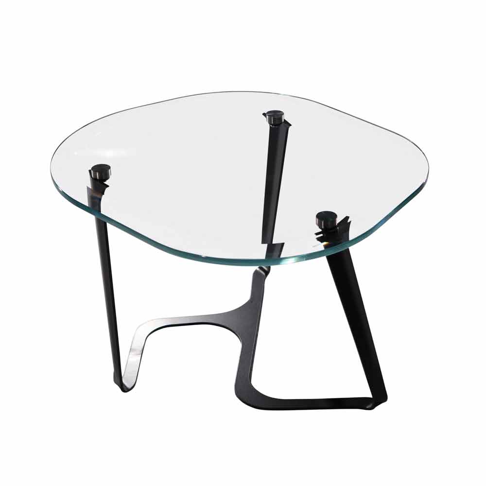 Mesa de centro refinada hecha a mano en Italia con tapa de vidrio templado transparente y estructura de acero pintado con acabado pizarra.