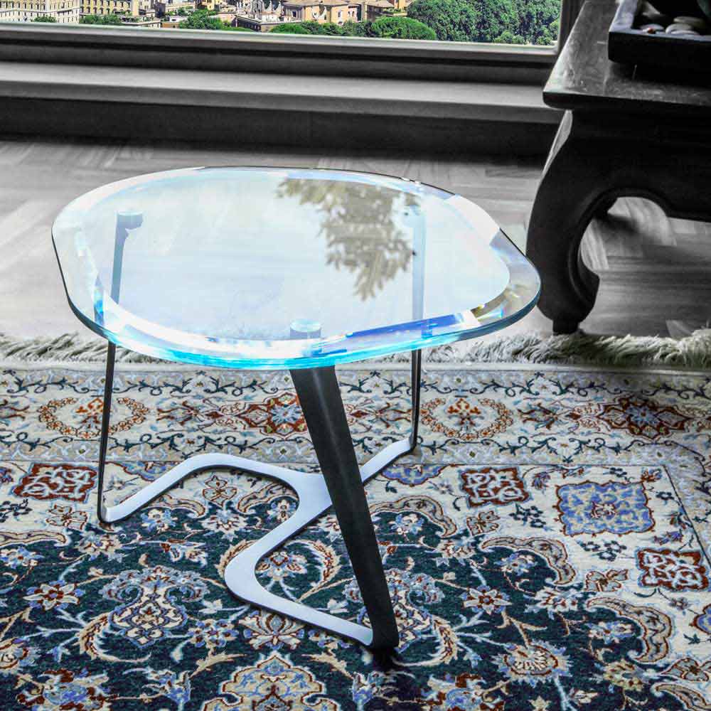 Formas originales y materiales de intrínseca elegancia dan vida a un mueble revolucionario creado para los amantes de un estilo impredecible y completamente innovador. Las líneas finas y delicadas de la estructura de acero siguen rasgos irregulares y únicos, representando un sólido soporte para la mesa de centro. Sobre ellos se coloca delicadamente la tapa, muy pura y ultraclara, cuyo brillo recuerda al de un verdadero diamante precioso sobre el que se desliza la luz, creando maravillosos juegos de contrastes. La elección de utilizar materias primas preciosas trabajadas a mano con una atención meticulosa al detalle permite crear una mesa de centro excéntrica capaz de combinar diseño y funcionalidad al mismo tiempo asegurando una mesa resistente, un tablero de mesa práctico y al mismo tiempo una decoración original. elemento para tu sala de estar.