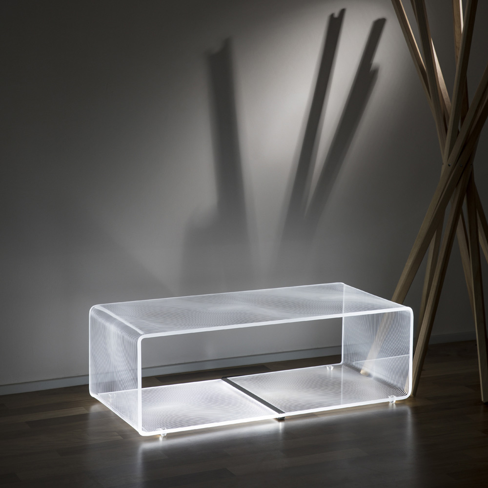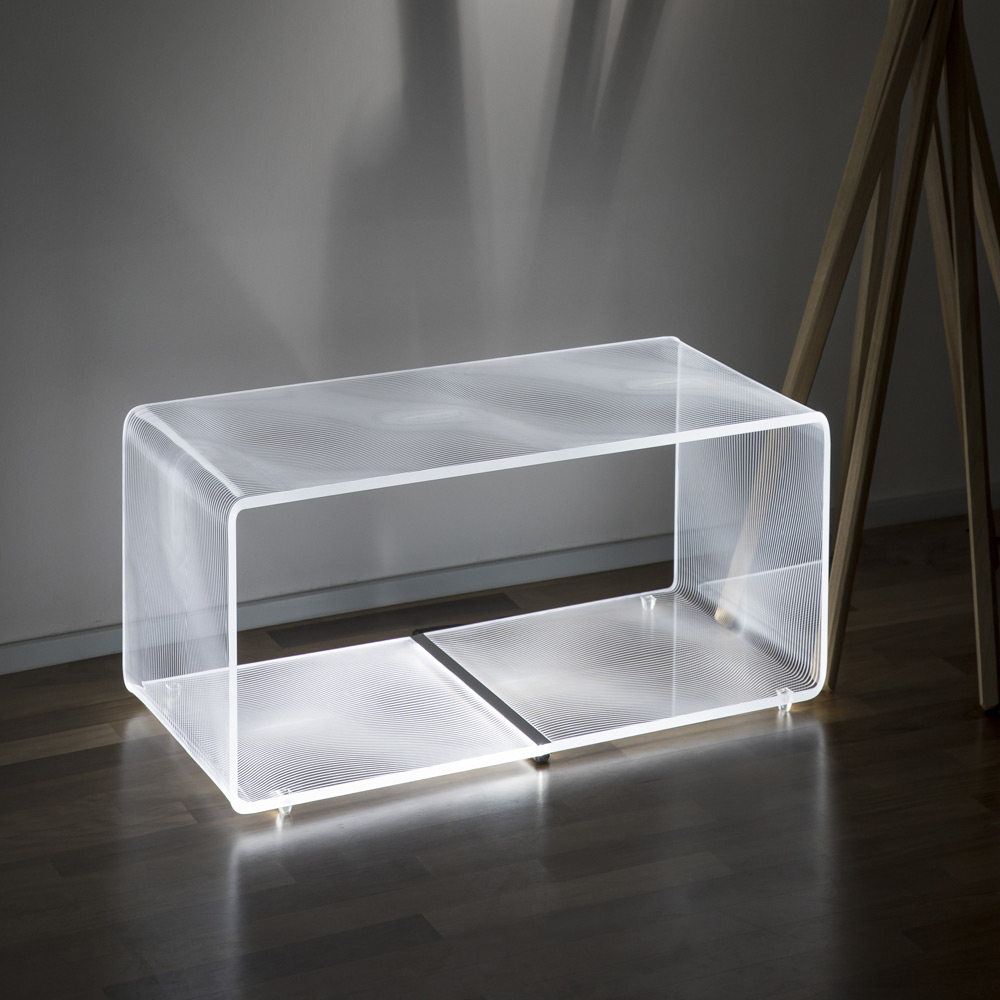 Mesa de luz de tira de led en acrílico transparente 2 variantes, made in Italy.