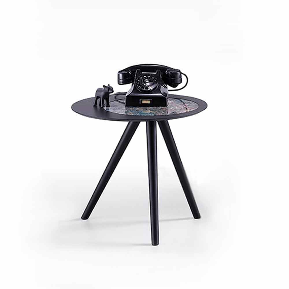 Mesa de centro moderna con tapa redonda en gres de mármol Made in Italy.
