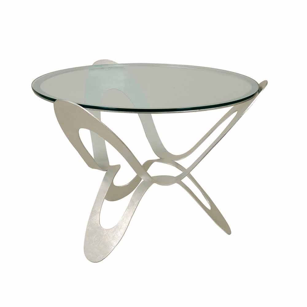Mesa de centro baja redonda producida en Italia hecha a mano en vidrio y pan de oro o plata.